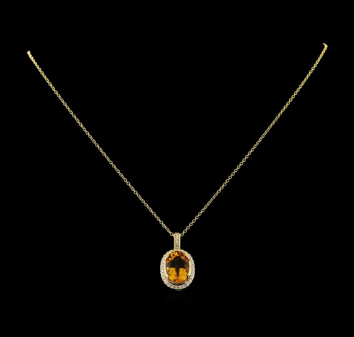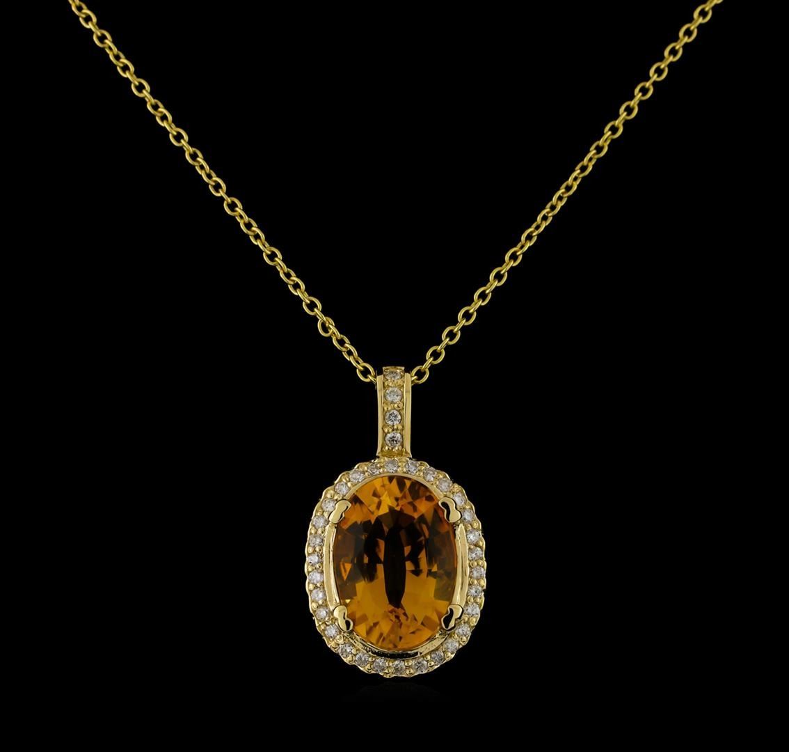 One Pendant With Chain featuring: 14KT Yellow Gold weighing 4.72 grams containing one Citrine center stone with a total weight of 5.45ct and Diamonds with a total weight of 0.34ct.