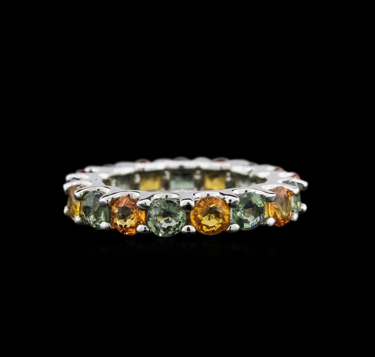 One ring featuring: 14KT white gold weighing 3.82 grams containing 17 green and orange sapphires with a total weight of 5.45ct.