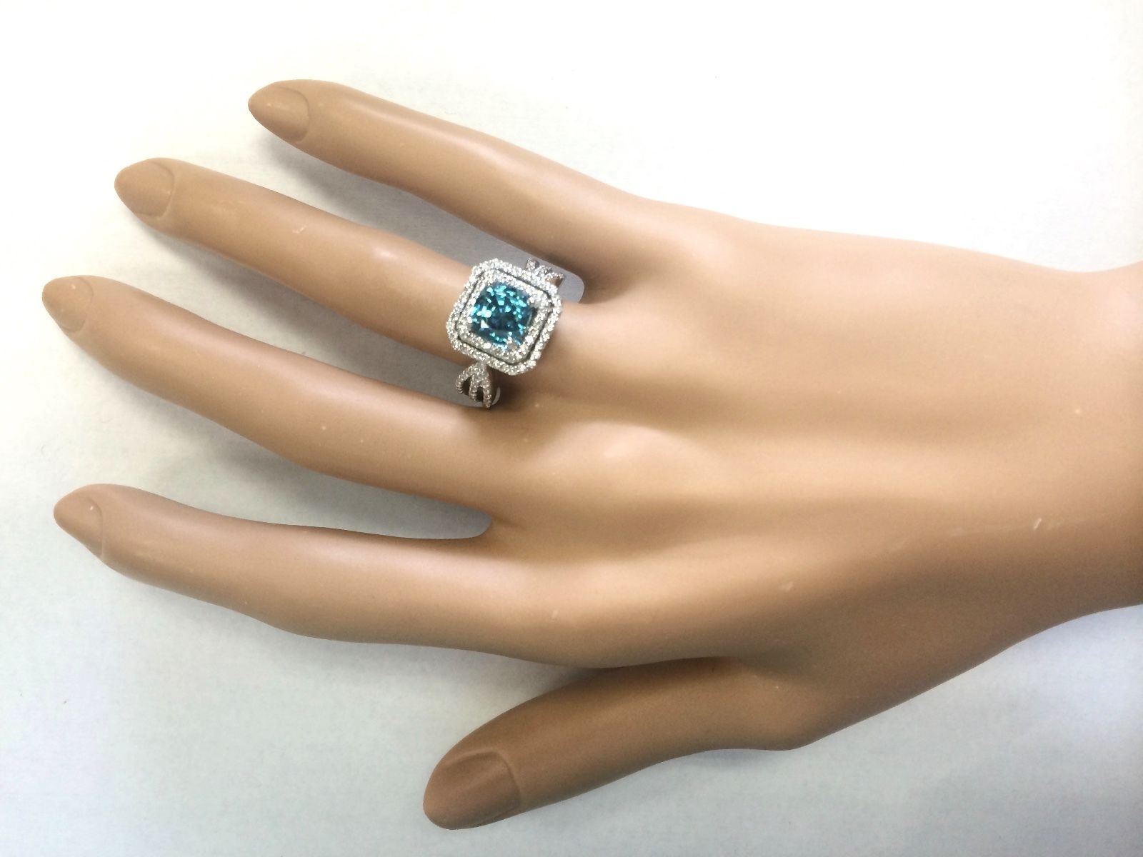 5.46 CTW Natural Blue Zircon And Diamond Ring 14k Solid White Gold