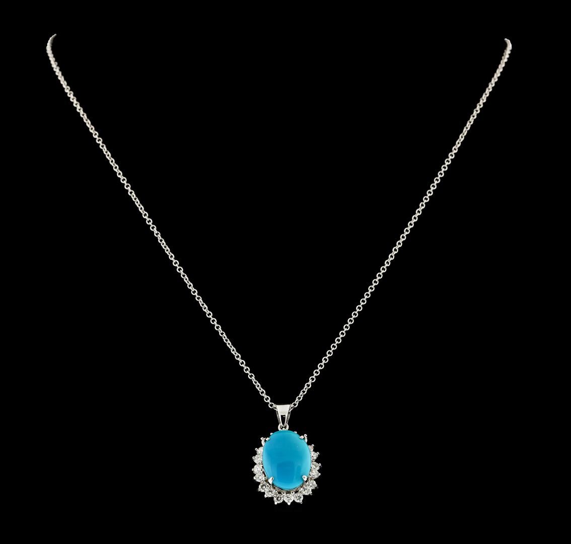 One pendant with chain : 14KT white gold weighing 3.91gm containing turquoise with a total weight of 4.30ct and diamonds weighing 0.74ctw.