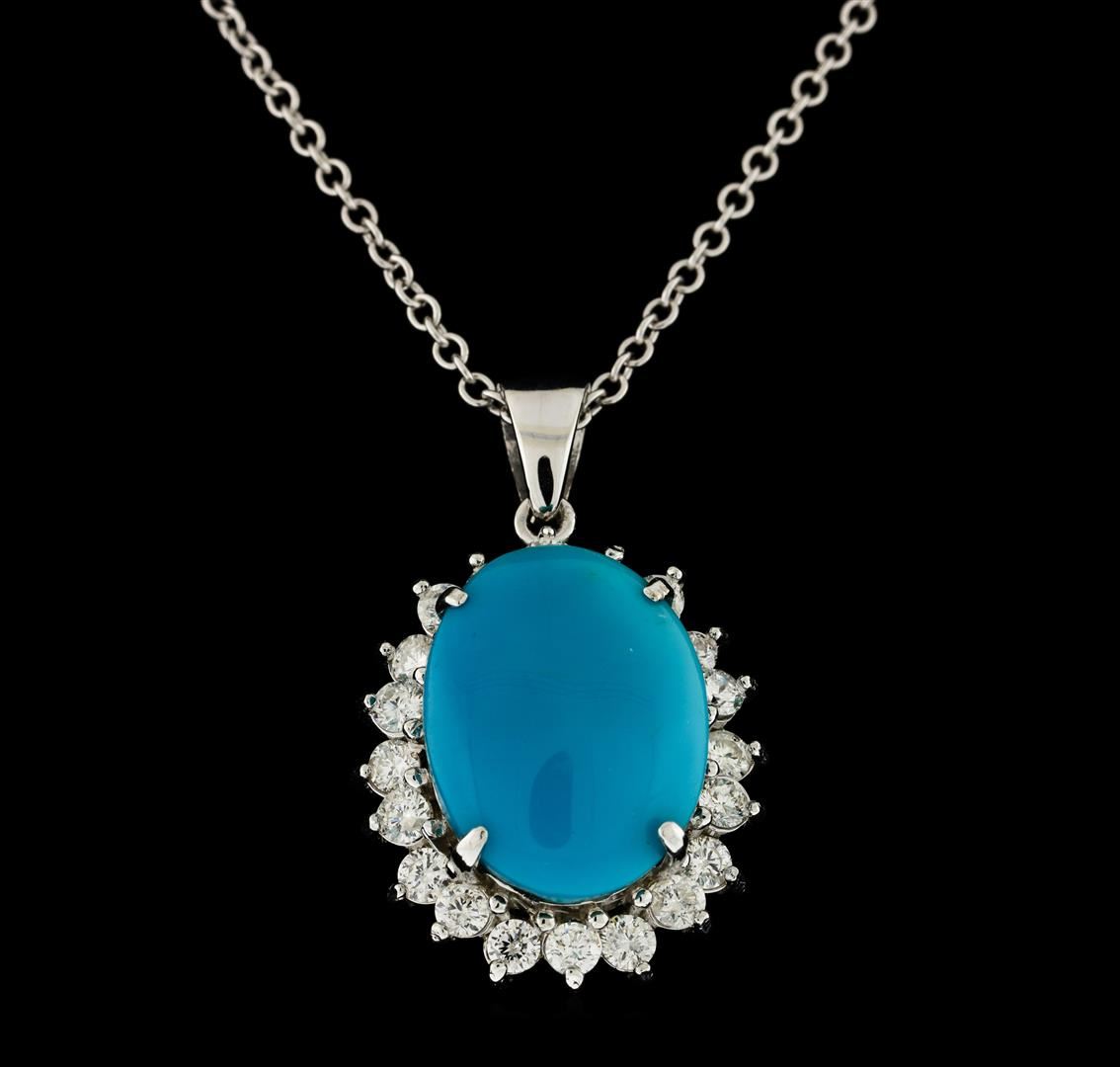 One pendant with chain : 14KT white gold weighing 3.91gm containing turquoise with a total weight of 4.30ct and diamonds weighing 0.74ctw.