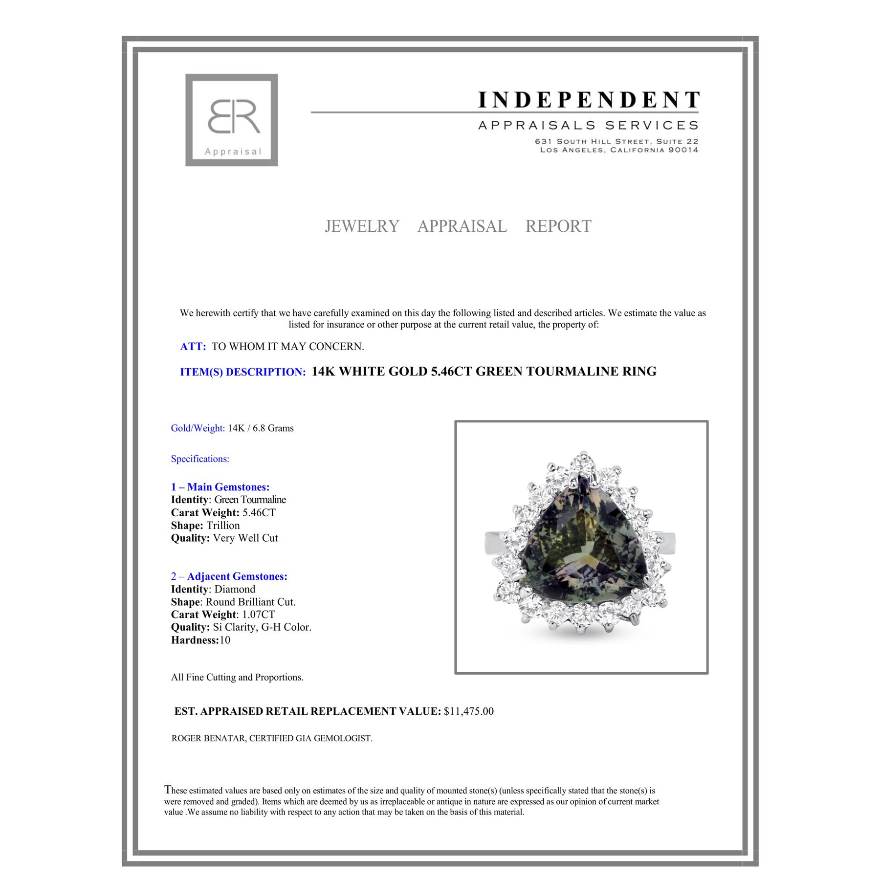 14k White Gold : 6.8gm / Green Tourmaline : 5.46ct / Diamond : 1.07ct / #LTOUR29