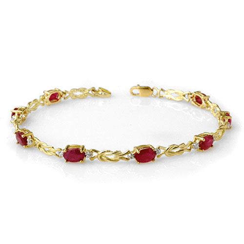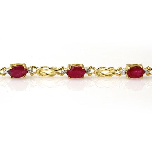 5.48 CTW Ruby & Diamond Bracelet 10K Yellow Gold ---- Luxury Designer Brand Bracelet Appraised Retail Price at $2,300 ---- SKU Number US14077 10k Yellow gold Bracelet Size is 7 Inches, Bracelet measuring approx. 7" x 1/4", weighing in total approx. 4.8 grams. Made in the USA and is stamped 10k, Main stone 5.46 carat total weight containing 8 pieces of Mid-Opaque-Deep Red color with AAA quality Oval shape cut Ruby , Stone #2 0.02 carat total weight containing 2 pieces of H-I color with VS/SI quality Round shape cut