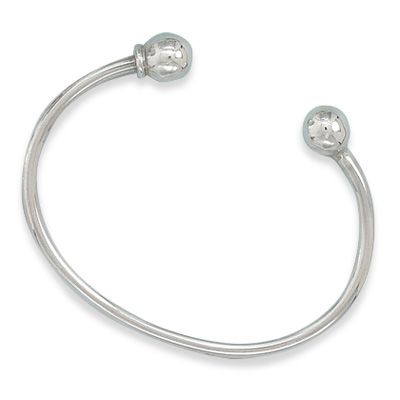 5.5" cuff measures 2.6mm wide and features 8mm ball ends.PLEASE NOTE: Because this item is handmade and varies slightly we are unable to provide replacement ball ends. .925 Sterling Silver