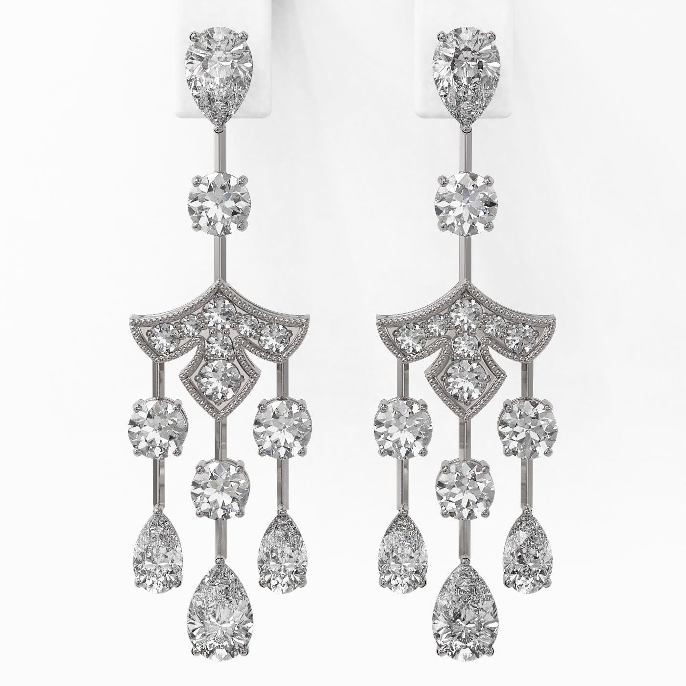 SKU: 49047 ---- 5.5 ctw Pear Cut Diamond Designer Earrings 18K White Gold