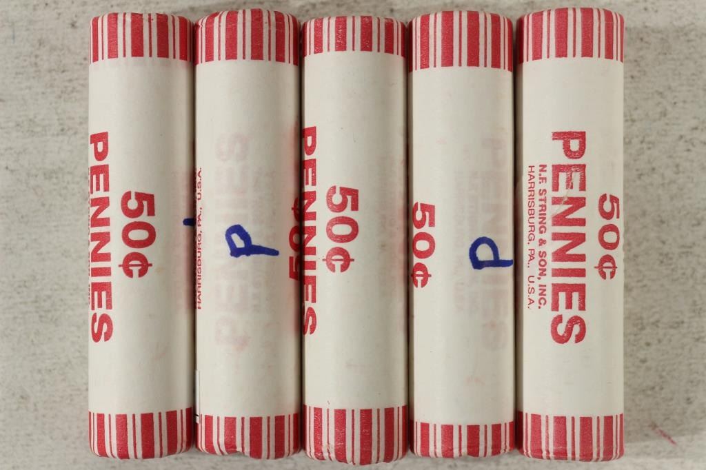 5-50 CENT ROLLS OF 2010-P SHIELD CENTS BU