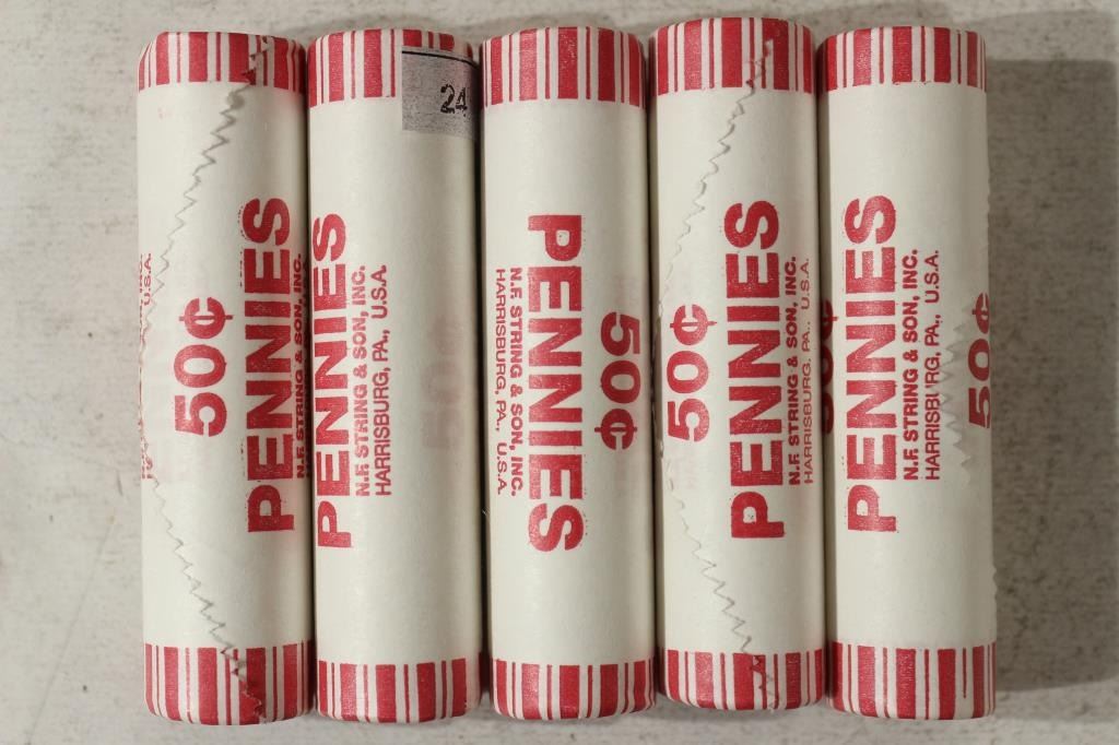 5-50 CENT ROLLS OF 2011-P LINCOLN SHIELD CENTS BU