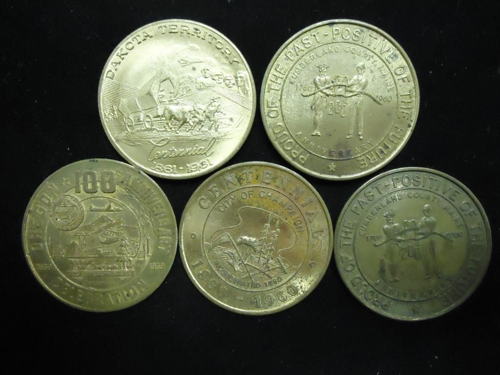 1961 DAKOTA TERRITORY, 1960 CUMBERLAND COUNTY, 1959 OREGON 100TH ANNIVERSARY, 1960 CENTENNIAL CITY OF CHAMPAIGN AND 1960 CUMBERLAND COUNTY