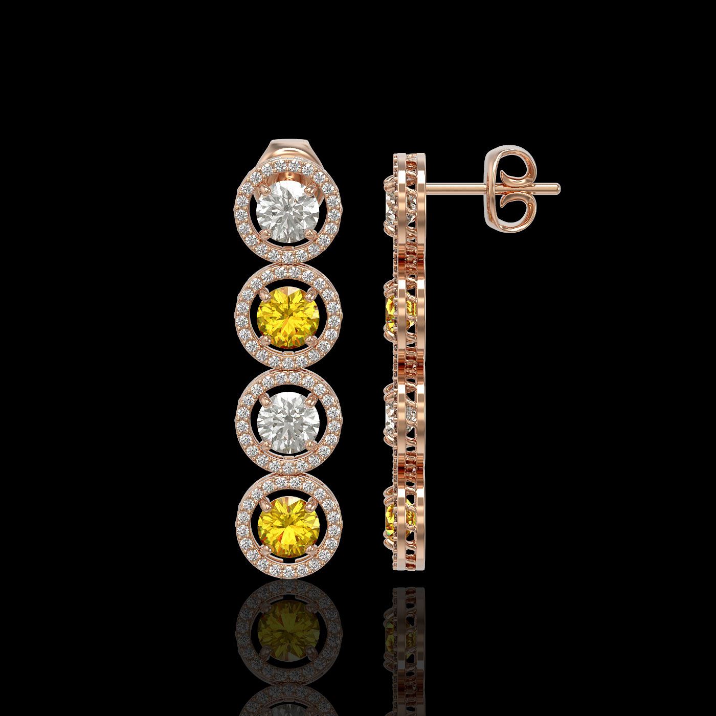 REF-789X5T -42603 ---- 5.50 CTW Canary Yellow & White Diamond Designer Earrings 18K Rose Gold ---- Luxury Designer Brand Earring Appraised at $34,750 Certificate Number US42603 18K Rose gold, Earring Size is 1 1/2 Inches Long, Earring measuring approx. 9 x 36 mm Long, weighing in total approx. 9 grams. Made in the USA and is stamped 18K, Main stone 2.08 carat total weight containing 4 pieces of I-J color with VS/SI quality Round shape cut Diamond , Stone #2 2.08 carat total weight containing 4 pieces of Fancy Canary Yellow color with SI/I quality Round shape cut Diamond , Stone #3 1.34 carat total weight containing 168 pieces of G-H color with VS/SI quality Round shape cut Diamond