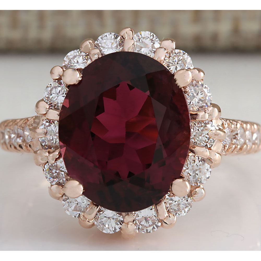 5.50 CTW Natural Pink Red Tourmaline And Diamond Ring 14k Solid Rose Gold