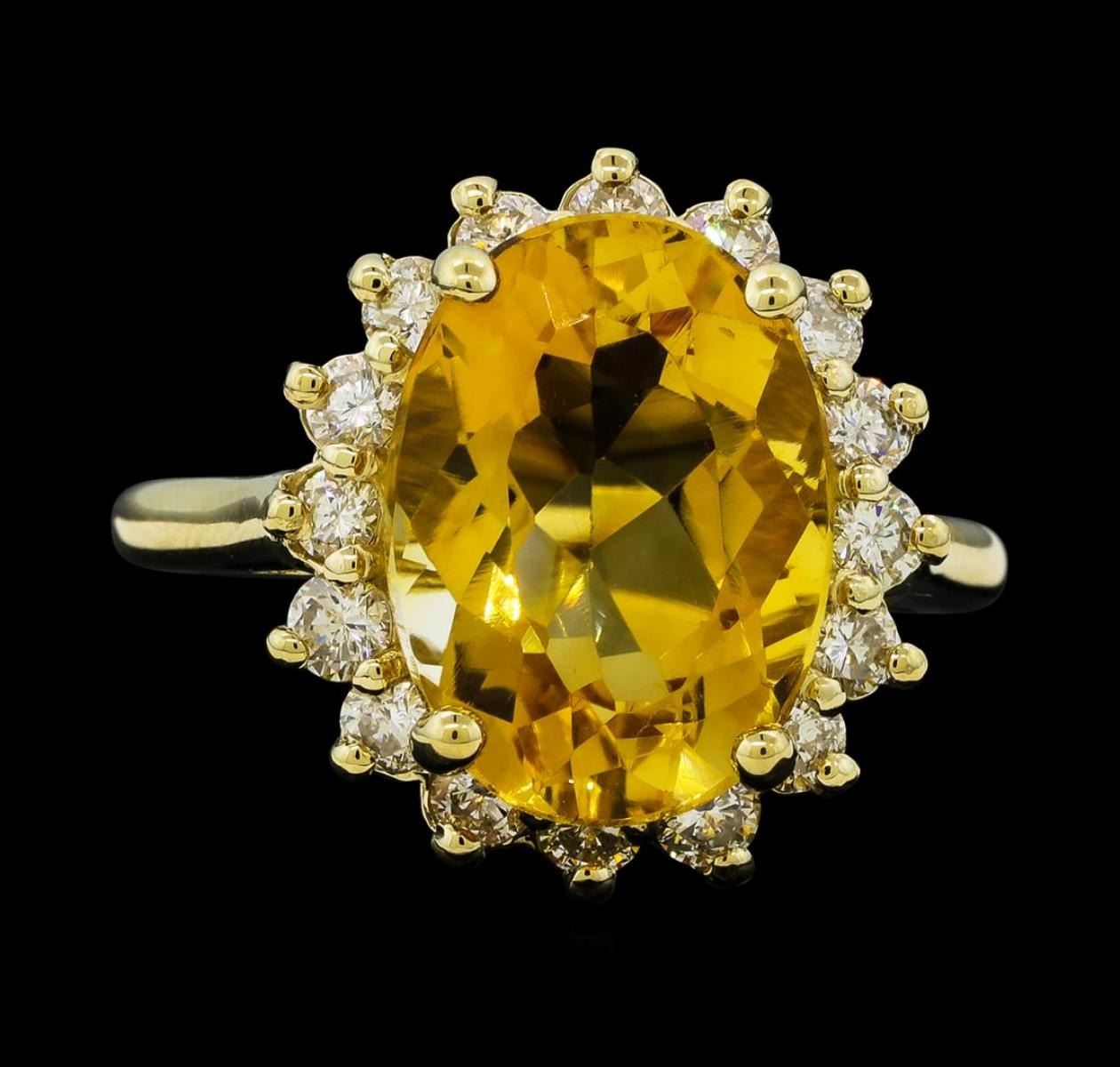 One Citrine Quartz and Diamond Ring including: 14KT Yellow Gold weighing a total of 5.38 grams, Citrine Quartz weighing a total of 5.50ct and 16 Diamonds weighing a total of 0.80ctw.
