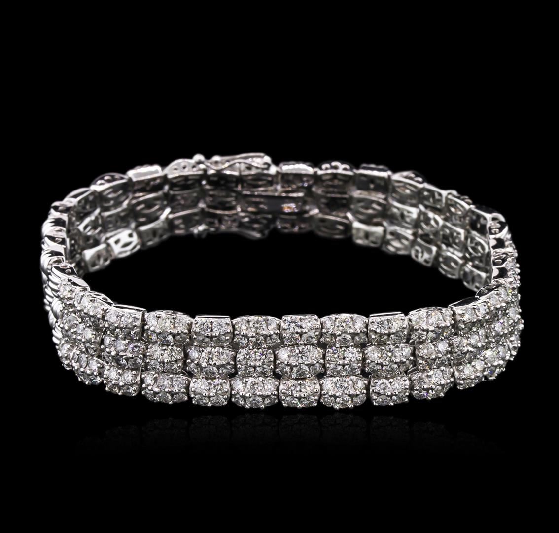 One electronically tested 14KT white gold lady's combination cast & assembled fashion bracelet with a tongue clasp with foldover safety with a bright polish finish. The featured lady's bracelet has a triple row basket weave motif and measures 7.25 inches in length. Identified with markings of "K14". Condition is new, good workmanship. Containing: Two Hundred Twenty-Six prong set round brilliant cut diamonds, measuring 1.90 - 1.80 x 1.17mm (depth est.) approximate total weight of 226 Stones = 5.50ct. Graded in the setting. Clarity: SI-2 to I-1. Color: H - Good. Total Weight of Diamonds 5.50ct. Total Weight of Bracelet 36.20gm at $14785.00.. GAS Appraised at $14,785.00.