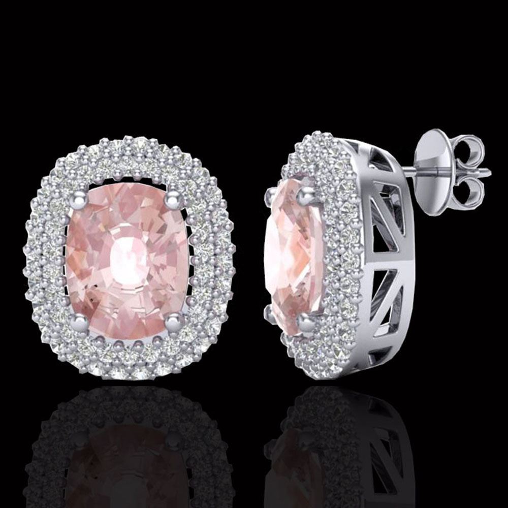 REF-173W6H - SKU: 20123 ---- 5.50 ctw Morganite & Micro Pave VS/SI Diamond Earrings 18k White Gold