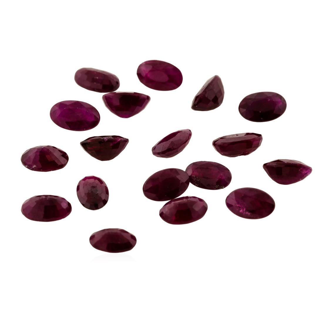 One natural oval cut ruby parcel of eighteen with an exact weight of 5.50ctw., clarity is heavily included, red to slightly purplish red, medium dark. Gemological Appraisals Services estimates the retail value at $825 GAS Appraised.
