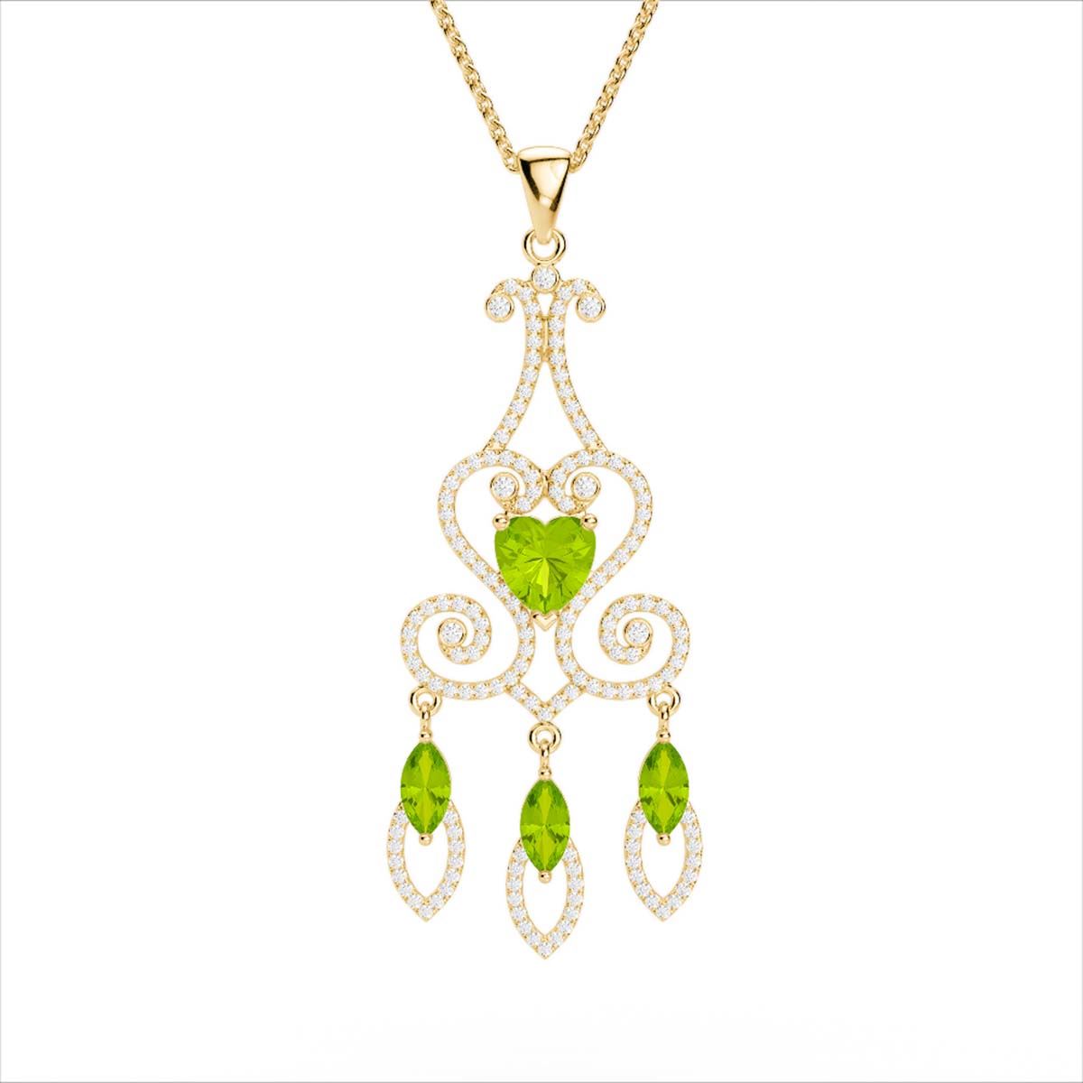 REF-148M7F - SKU:23593 ---- 5.50 ctw Peridot & Diamond Heart Necklace 14K Yellow Gold
