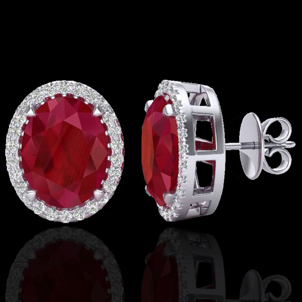 REF-81K8Y - SKU: 20257 ---- 5.50 ctw Ruby & Micro VS/SI Diamond Halo Earrings 18k White Gold