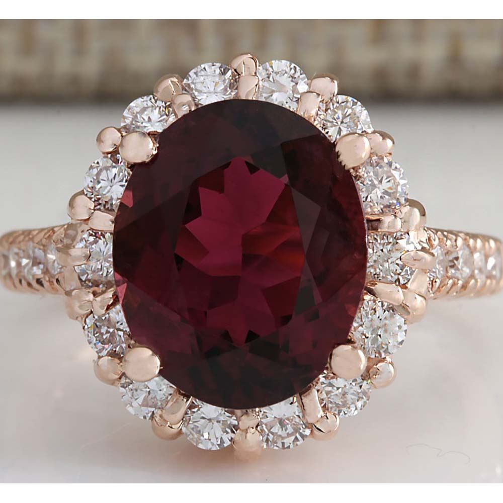 5.50CTW Natural Red Tourmaline And Diamond Ring 18K Solid Rose Gold