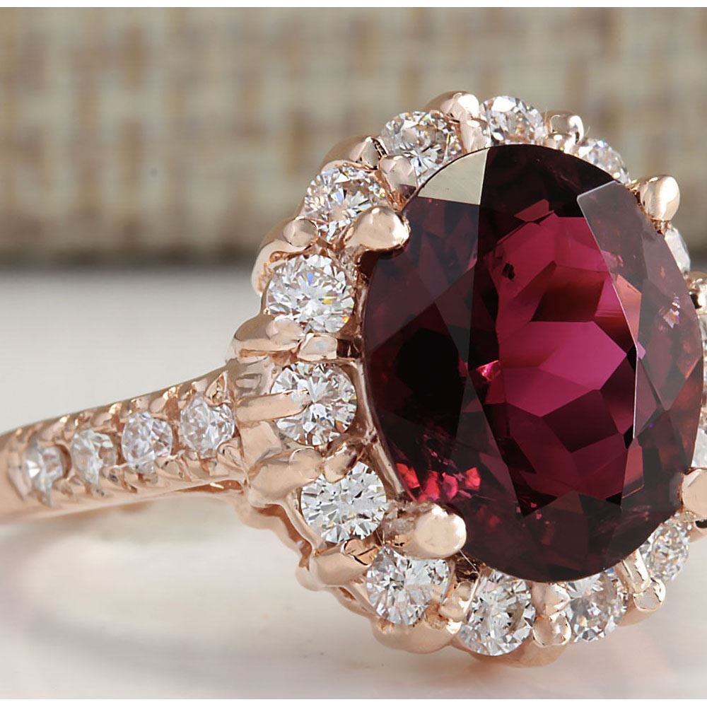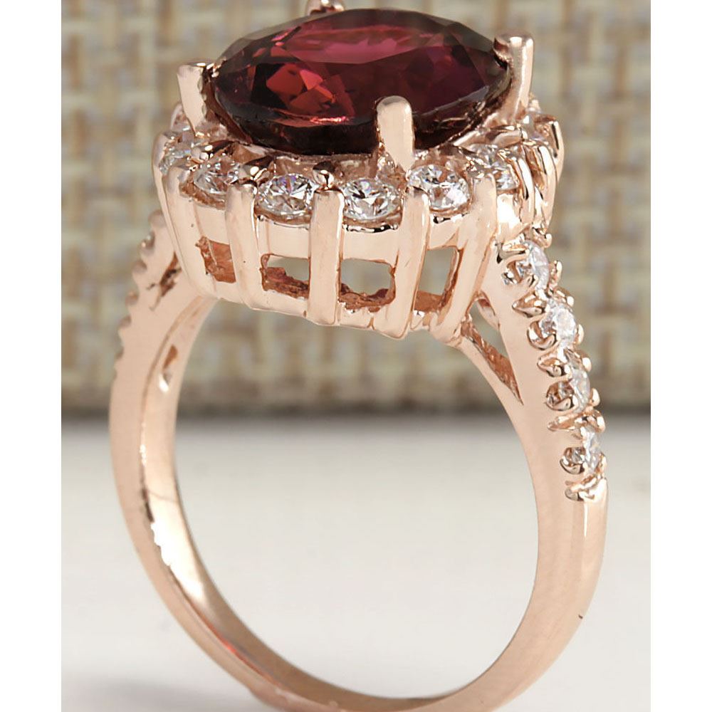 5.50CTW Natural Red Tourmaline And Diamond Ring 18K Solid Rose Gold