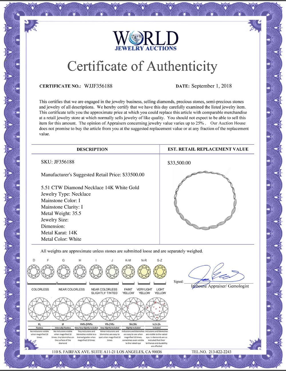 REF-443X9R - JF356188 ---- 5.51 CTW White Round Diamond Necklace 14K White Gold