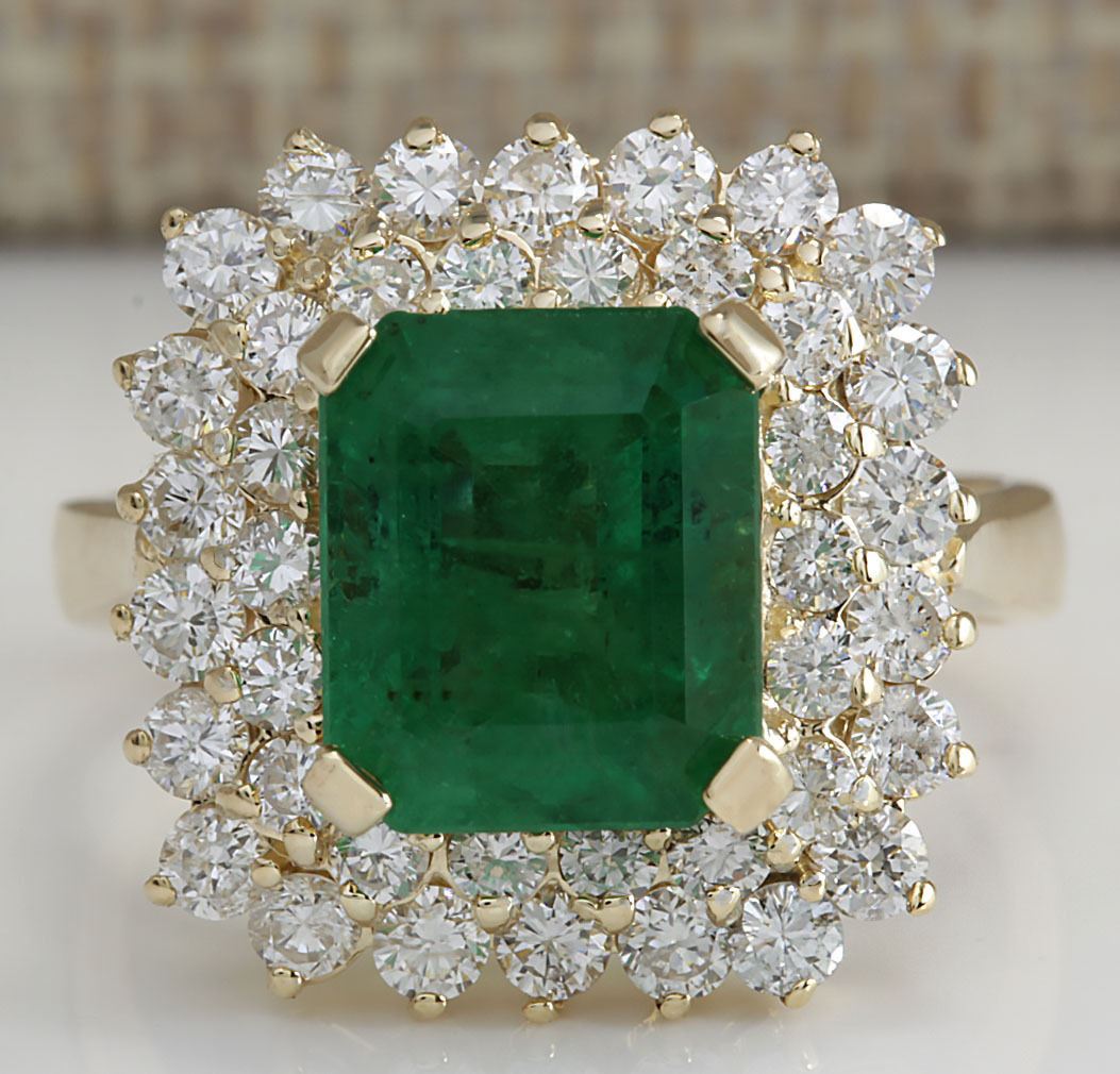 5.51 CTW Natural Emerald And Diamond Ring 18K Solid Yellow Gold