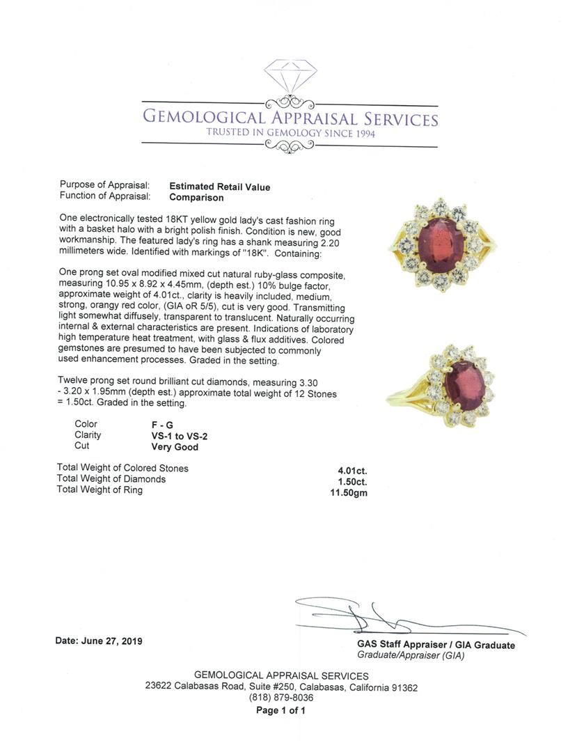 One electronically tested 18KT yellow gold lady's cast fashion ring with a basket halo with a bright polish finish. The featured lady's ring has a shank measuring 2.20 millimeters wide. Identified with markings of '18K'. Condition is new, good workmanship