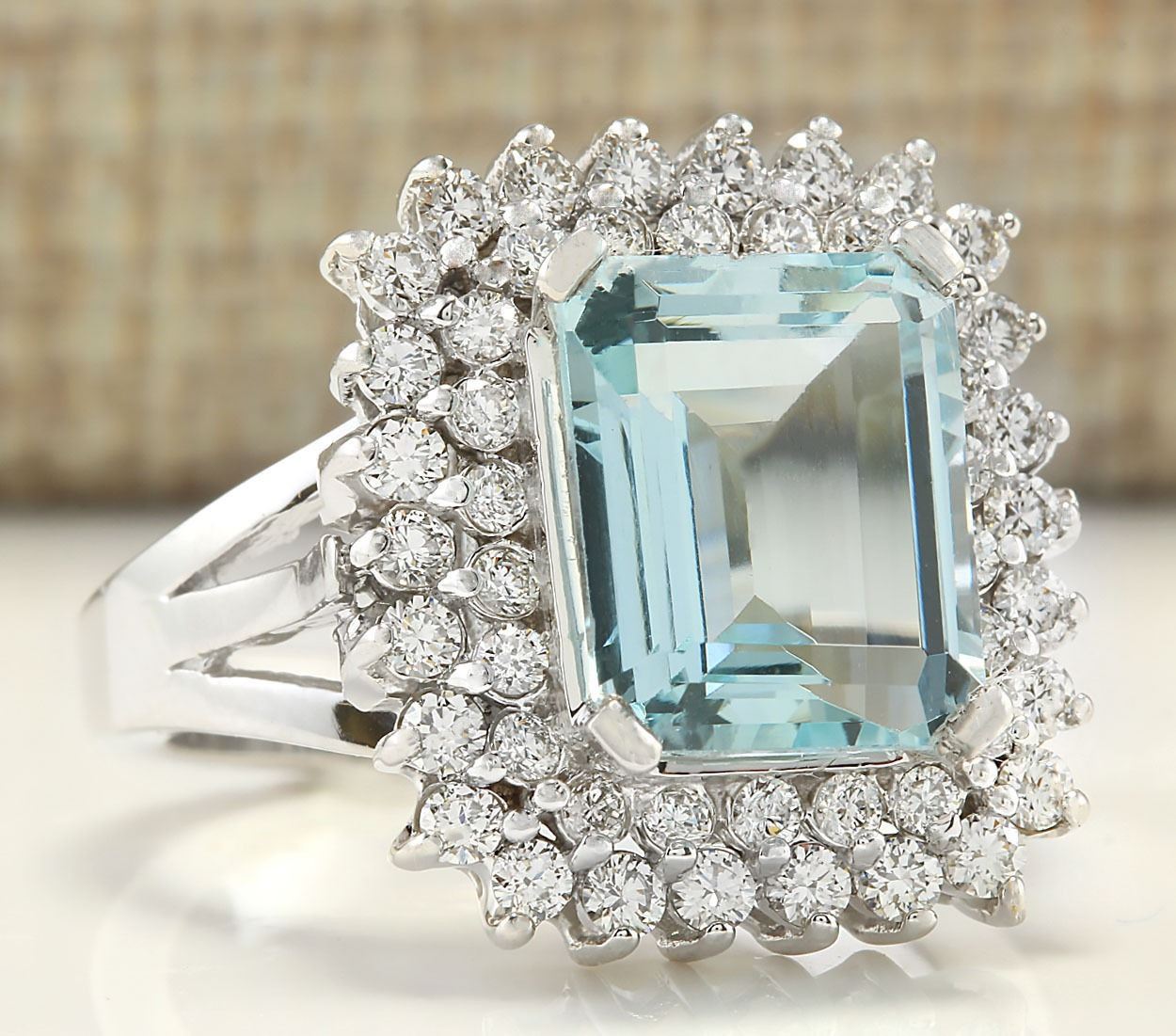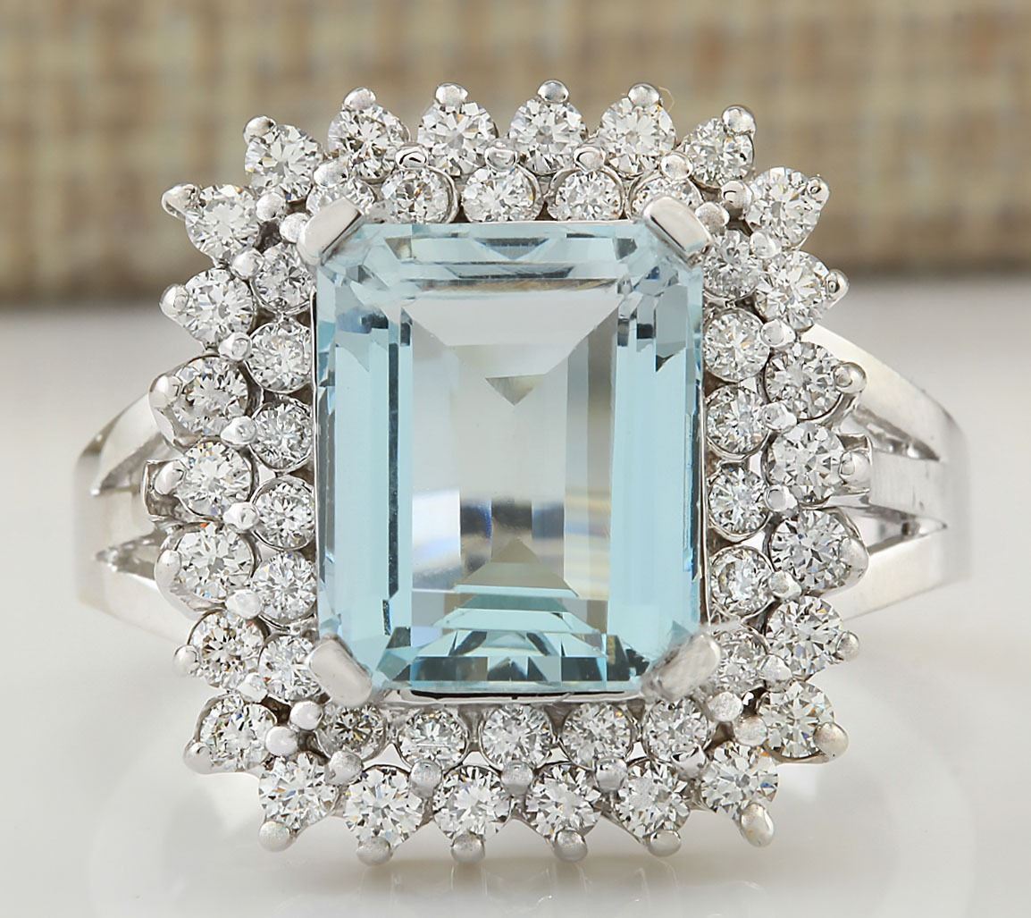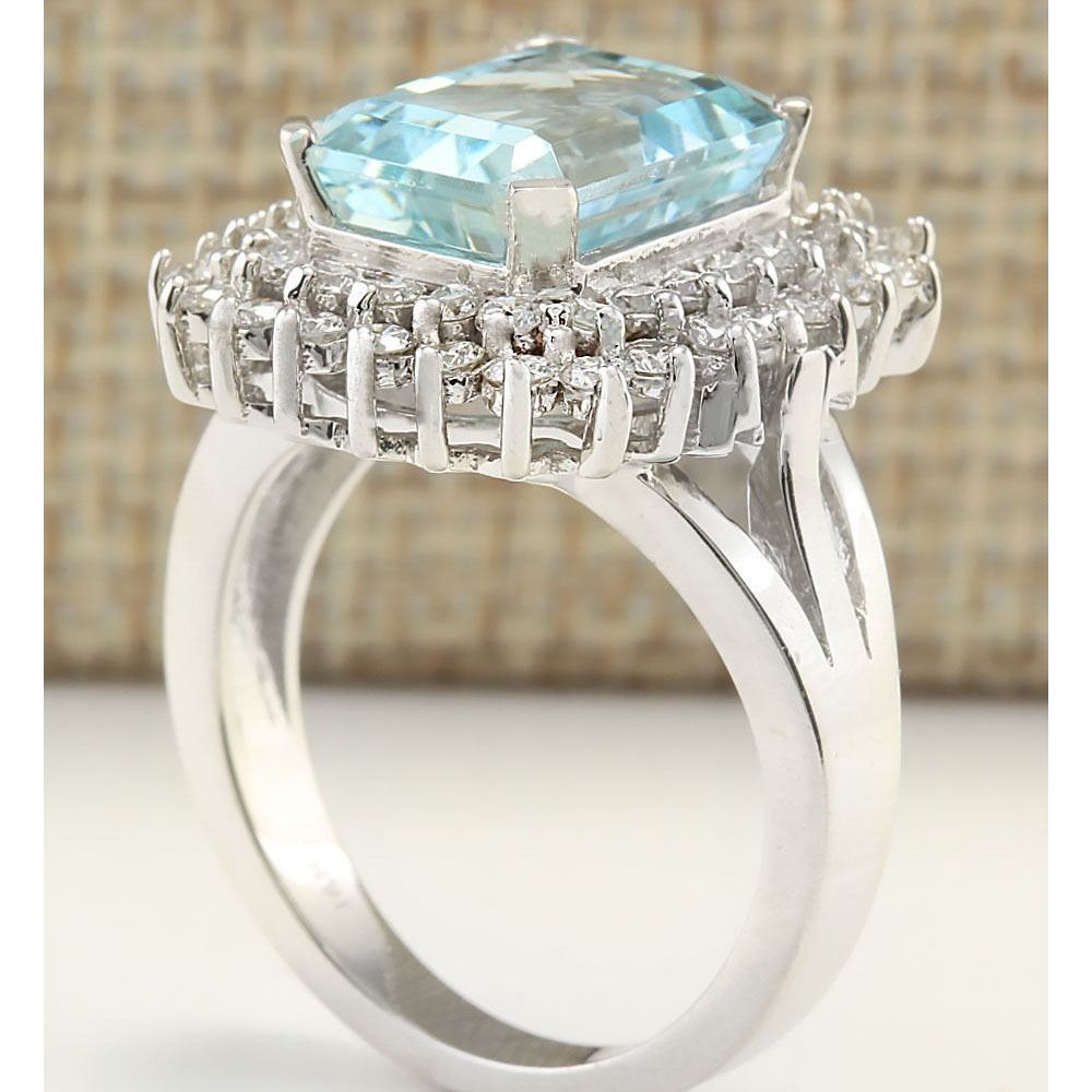 5.52 CTW Natural Aquamarine And Diamond Ring In 14k Solid White Gold