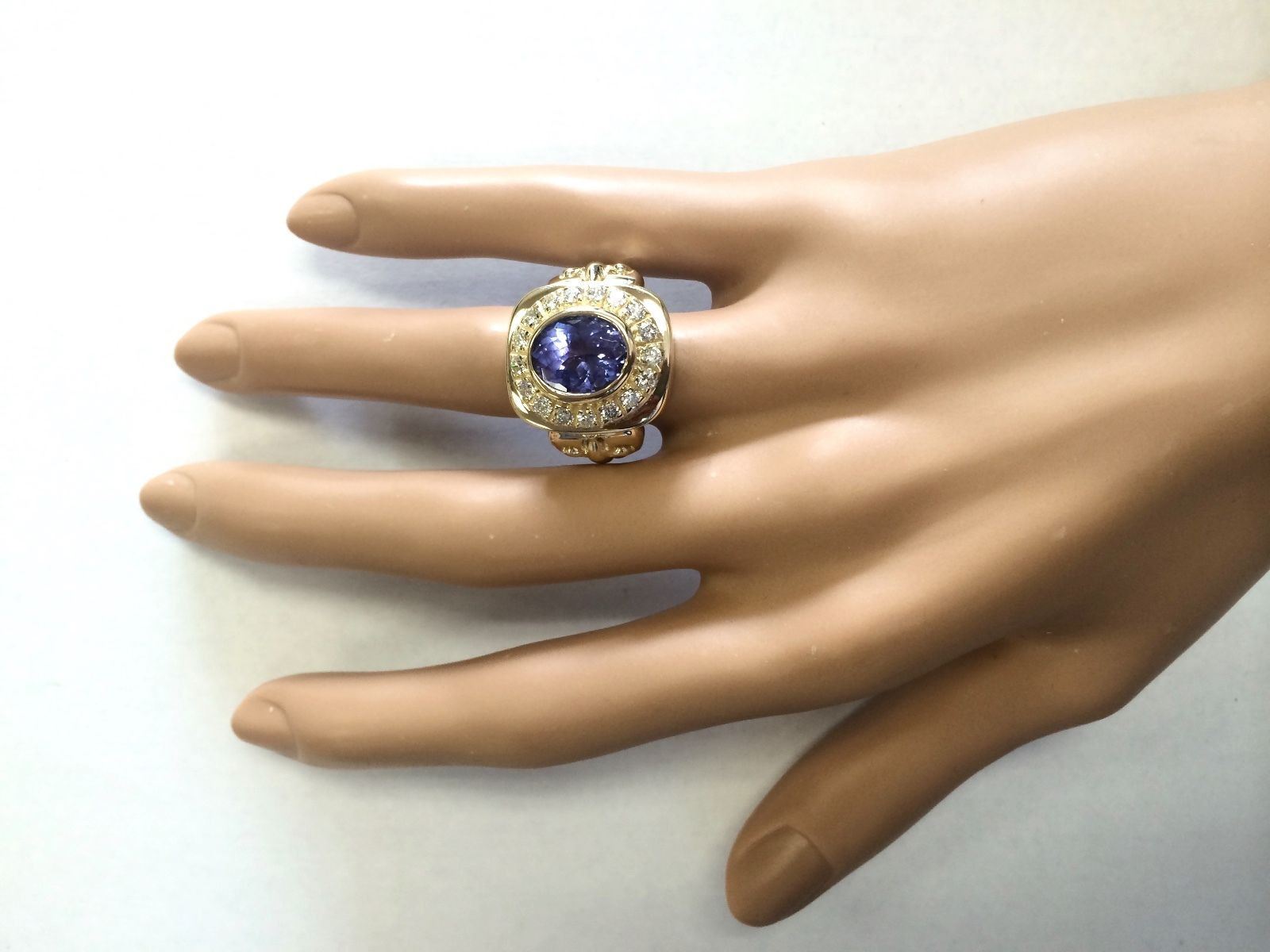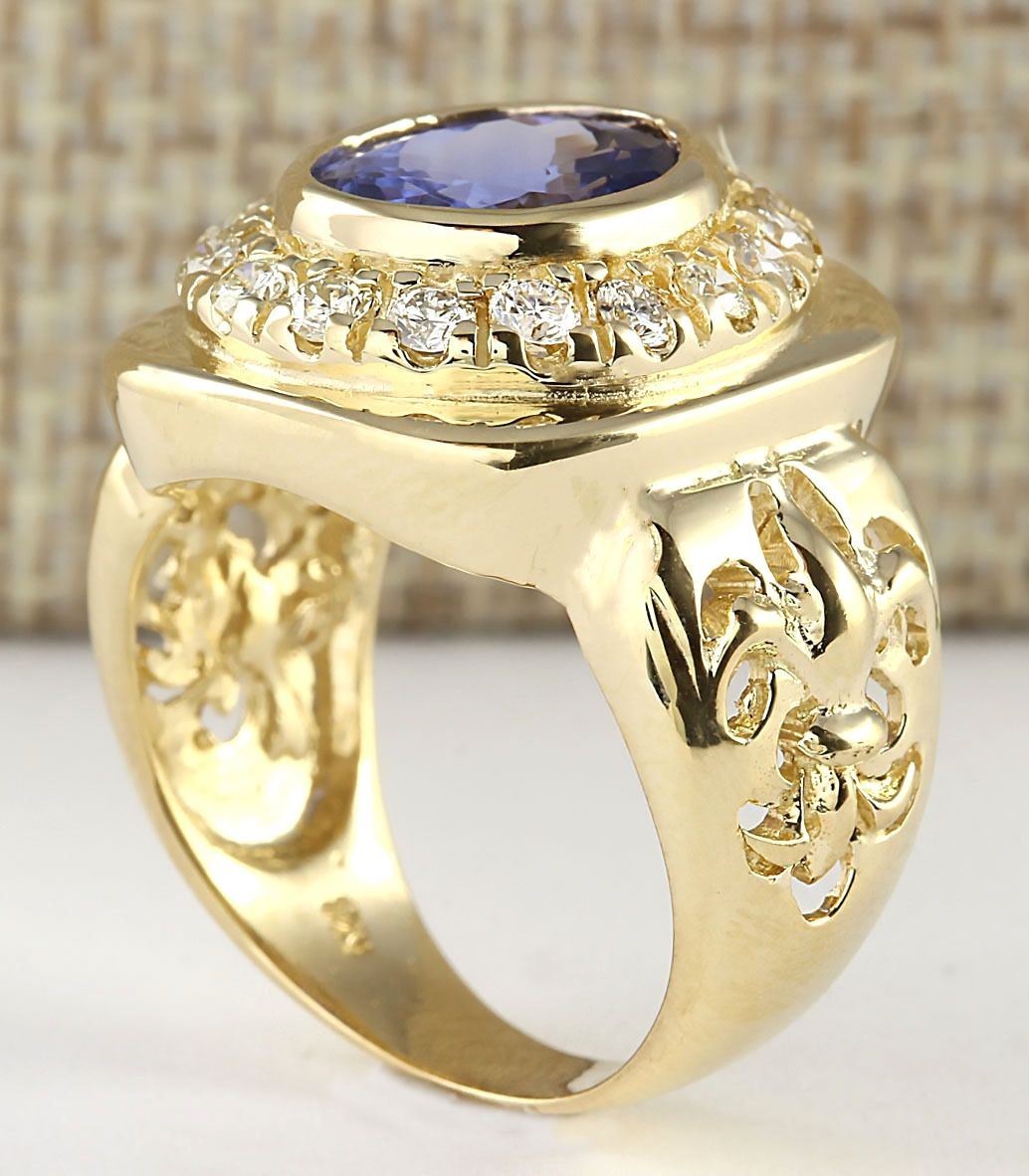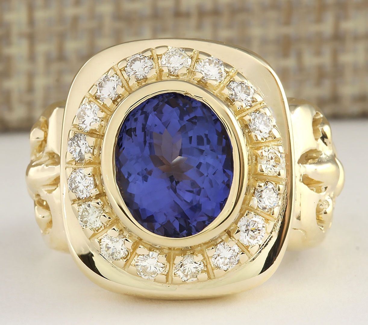5.52 CTW Natural Mens Blue Tanzanite And Diamond Ring 14k Yellow Gold