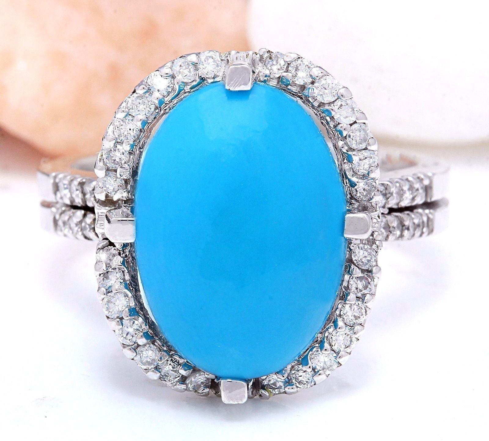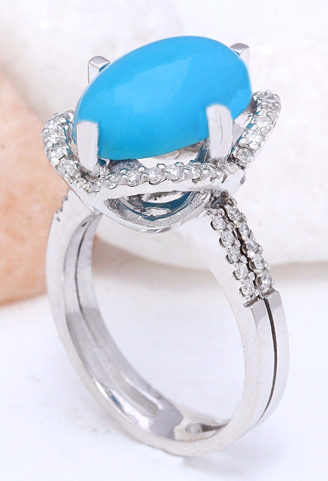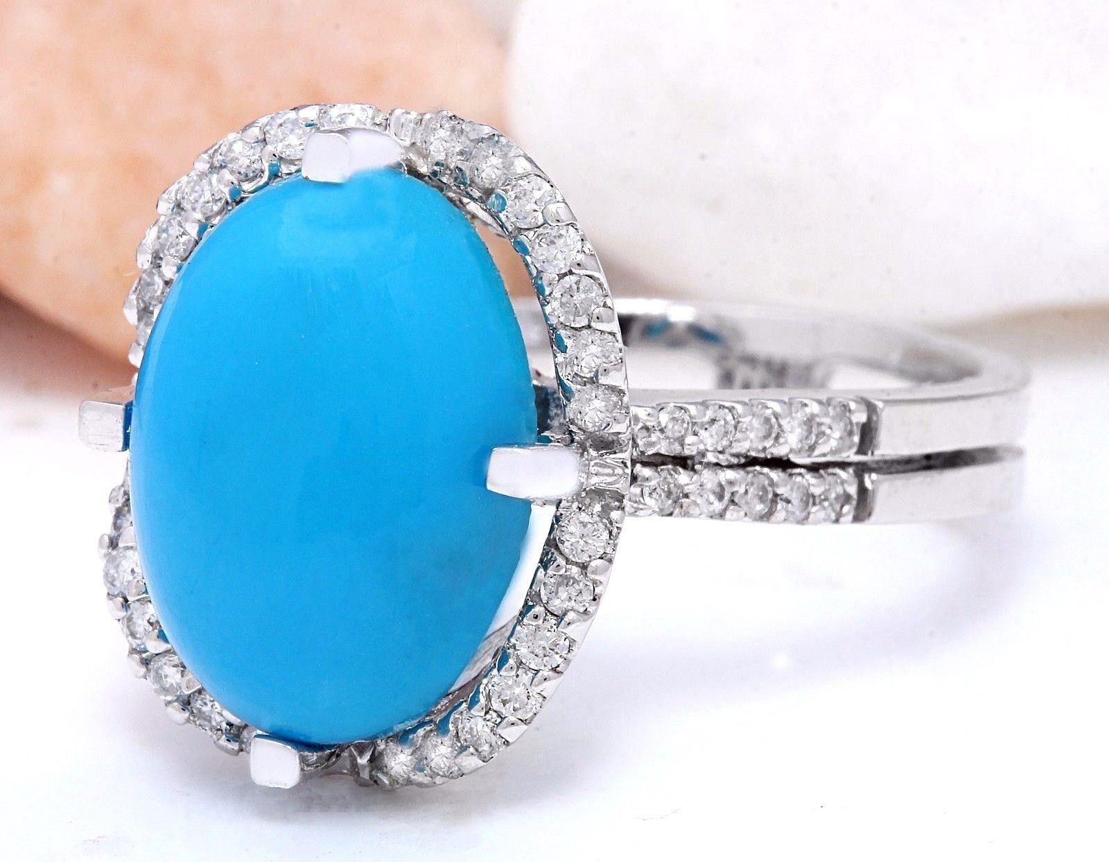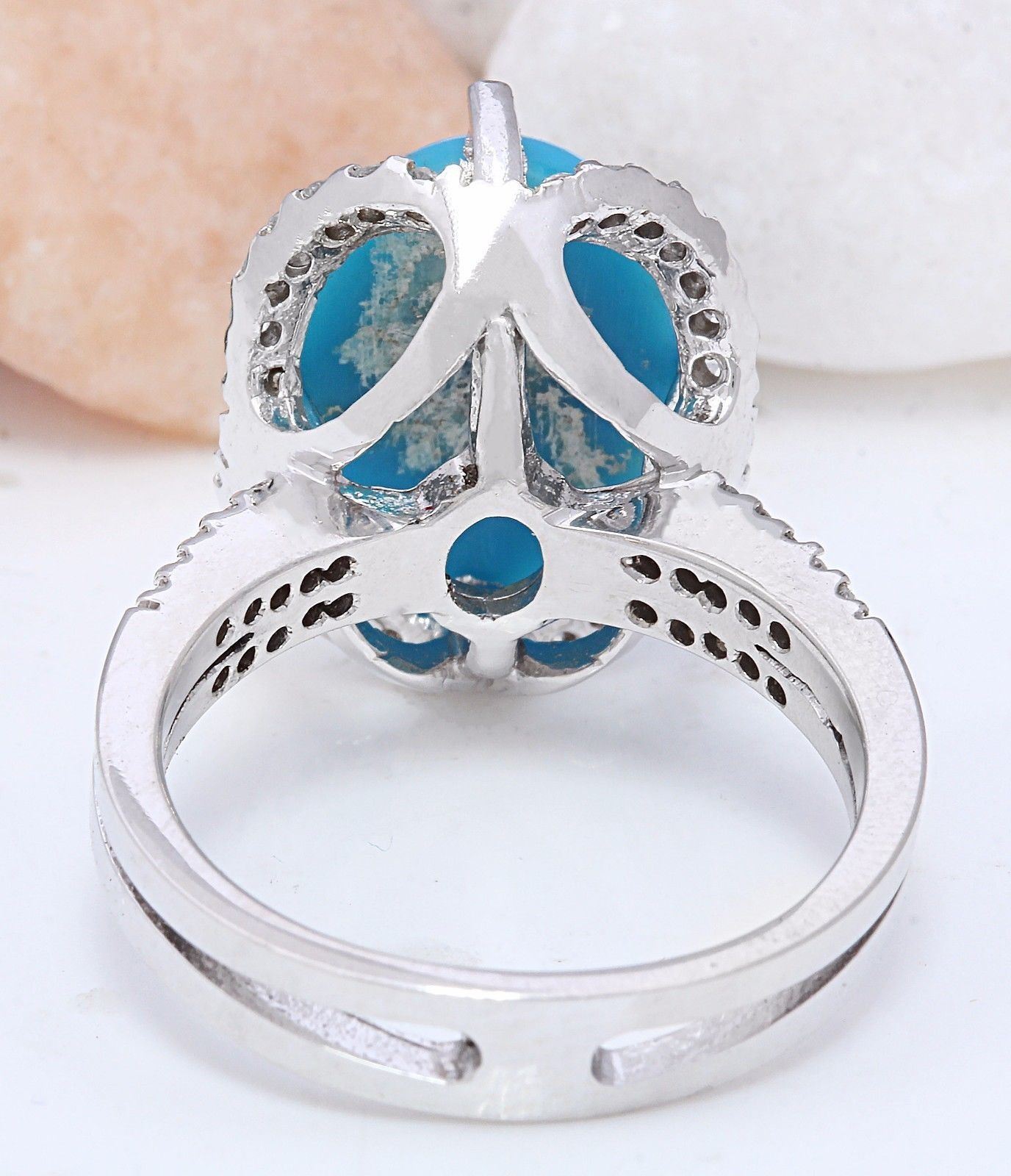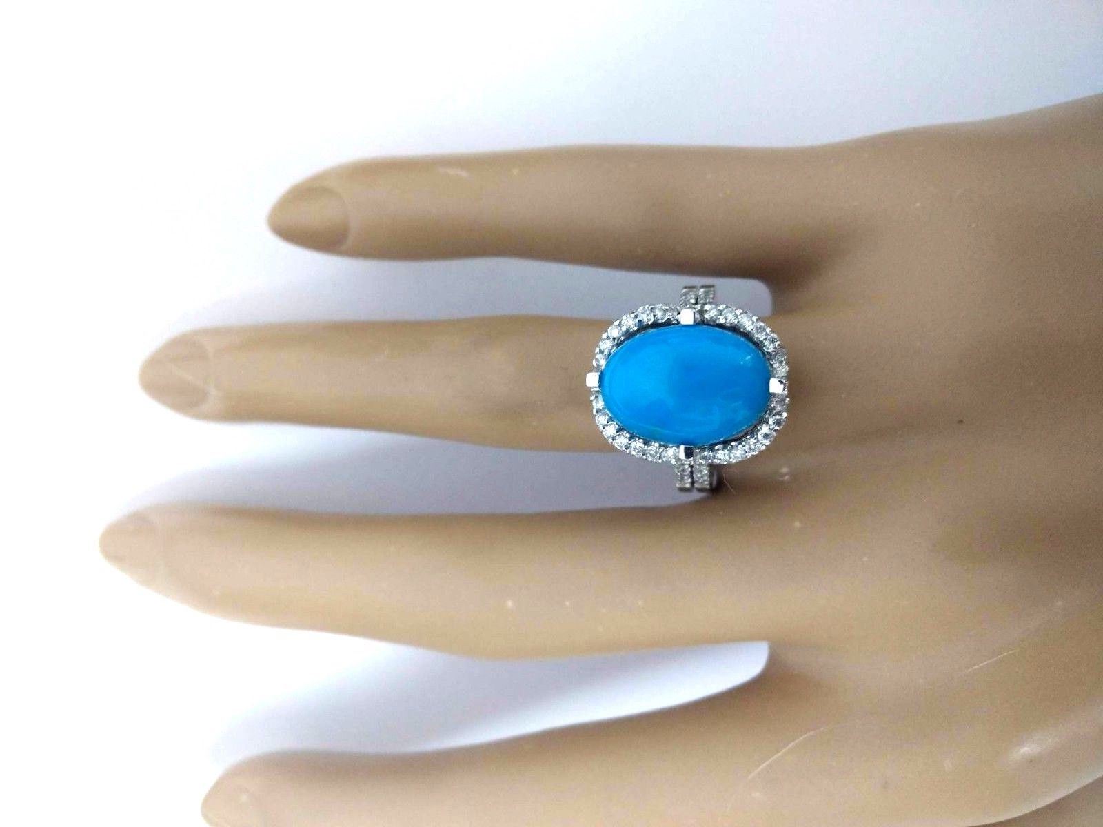 5.52 Carat Natural Turquoise 18K Solid White Gold Diamond Ring