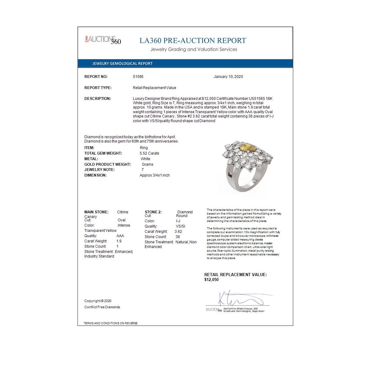 REF-273R6K - SKU: 51565 ---- 5.52 ctw Canary Citrine & Diamond Ring 18K White Gold