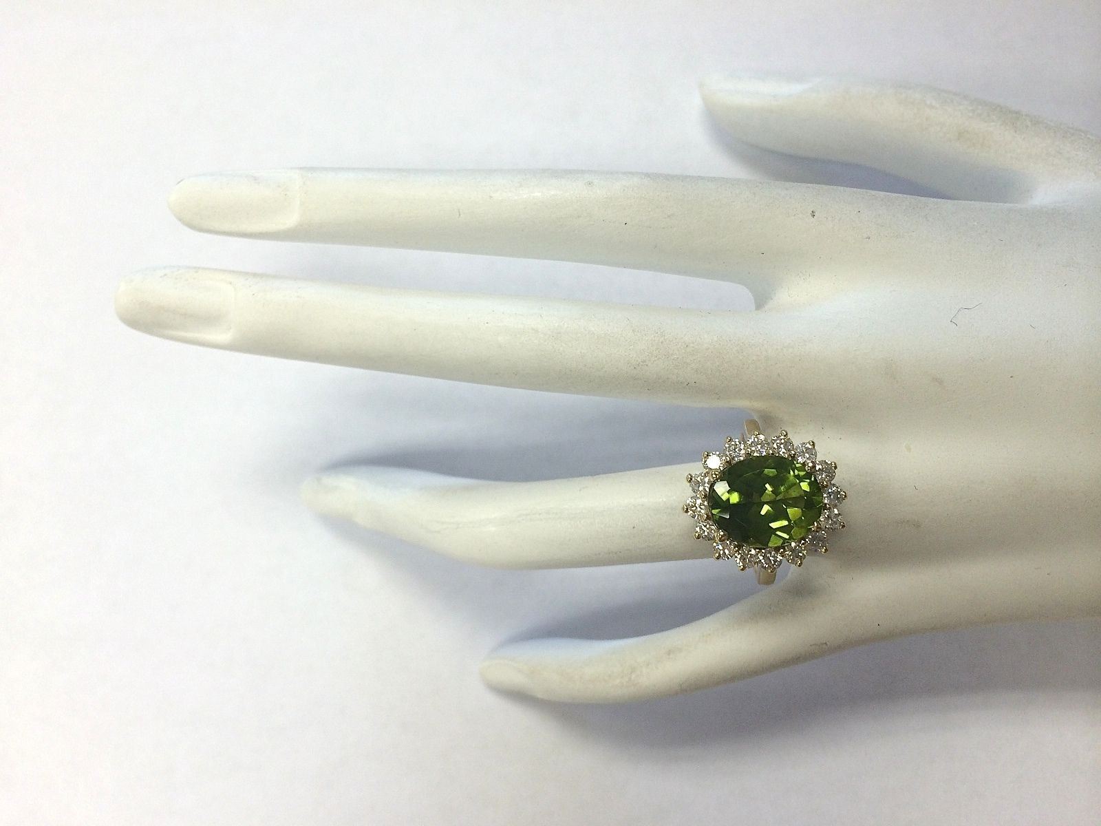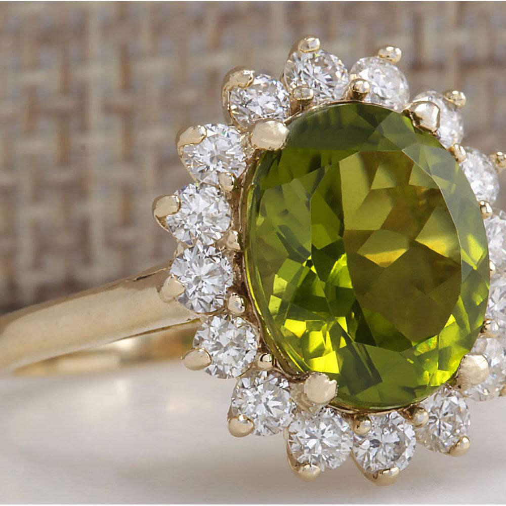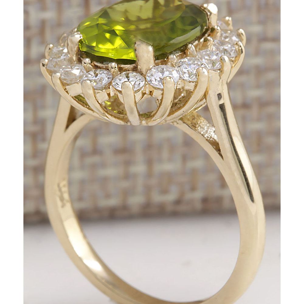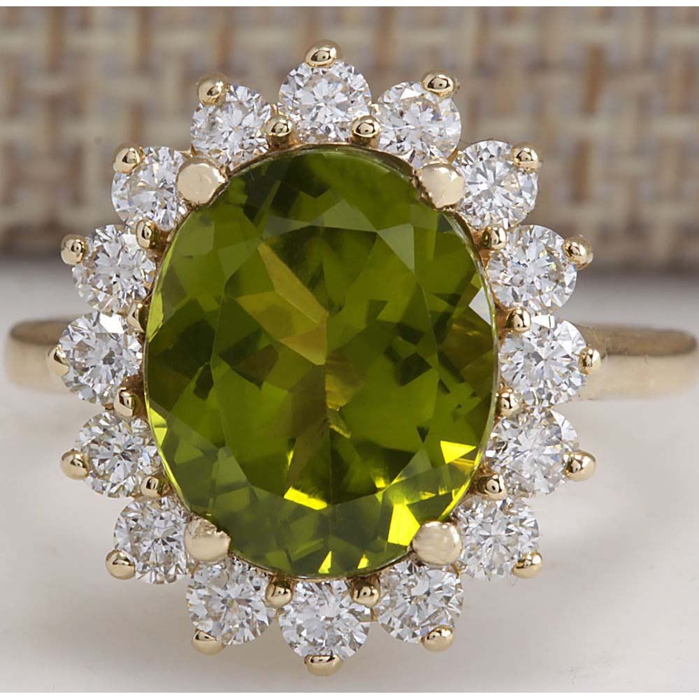 5.53 CTW Natural Green Peridot And Diamond Ring 18K Solid Yellow Gold