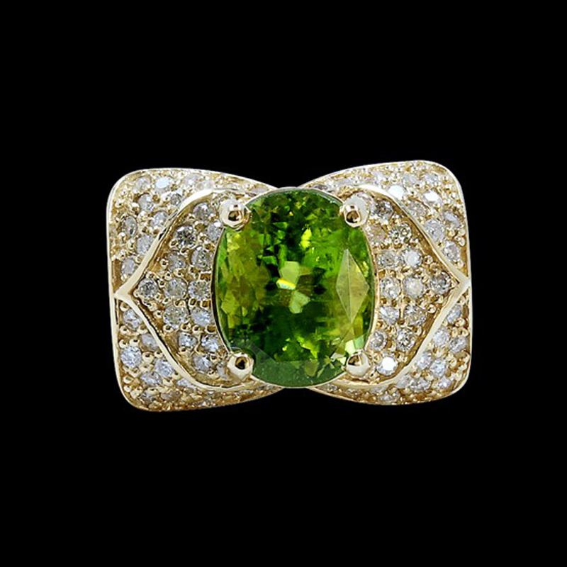 14K Y/G NATURAL BURMA PERIDOT RING :10.49GR/ DIAMOND: 0.83CT /BURMA PERIDOT: 5.53CT/#GVR1369