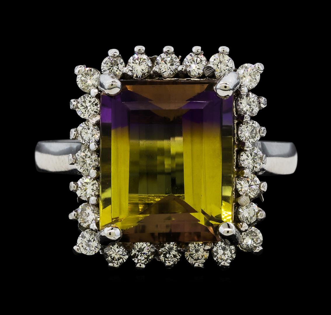 One Ametrine Quartz and Diamond Ring including: 14KT White Gold weighing a total of 6.03 grams, Ametrine Quartz weighing a total of 5.54ct and 24 Diamonds weighing a total of 0.58ctw.