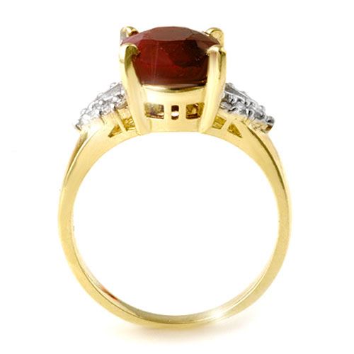 12981 - REF-40F2N ---- 5.55 CTW Ruby & Diamond Ring 10K Yellow Gold ---- Luxury Designer Brand Ring Appraised at $2,650 Certificate Number US12981 10k Yellow gold, Ring Size is 6.5, Ring measuring approx. 7/16" x 5/8 , weighing in total approx. 4 grams. Made in the USA and is stamped 10k, Main stone 5.35 carat total weight containing 1 pieces of Mid-Opaque-Deep Red color with AAA quality Oval shape cut Ruby , Stone #2 0.2 carat total weight containing 14 pieces of H-I color with VS/SI quality Round shape cut Diamond