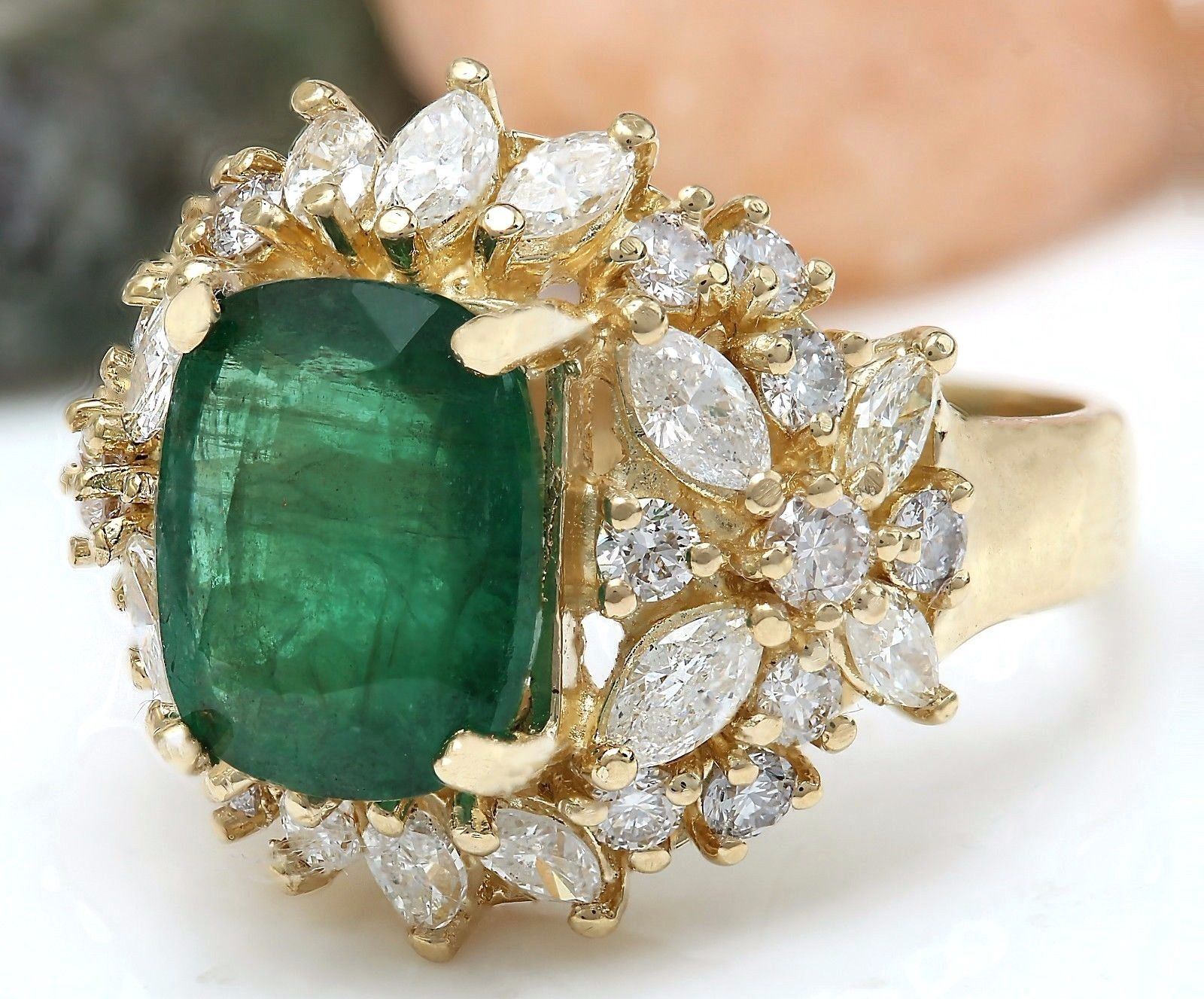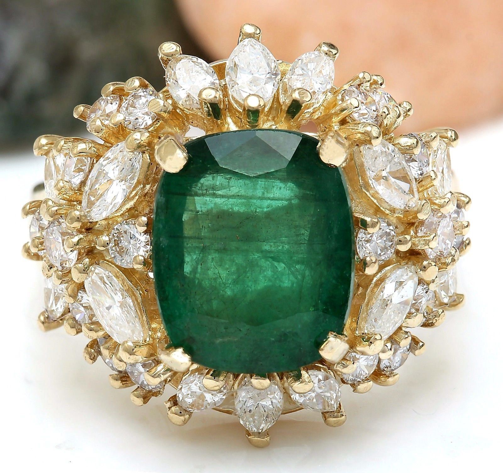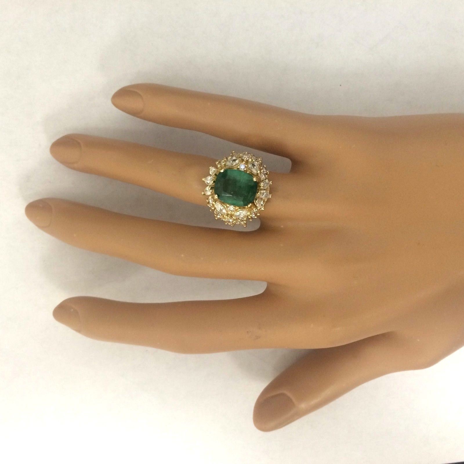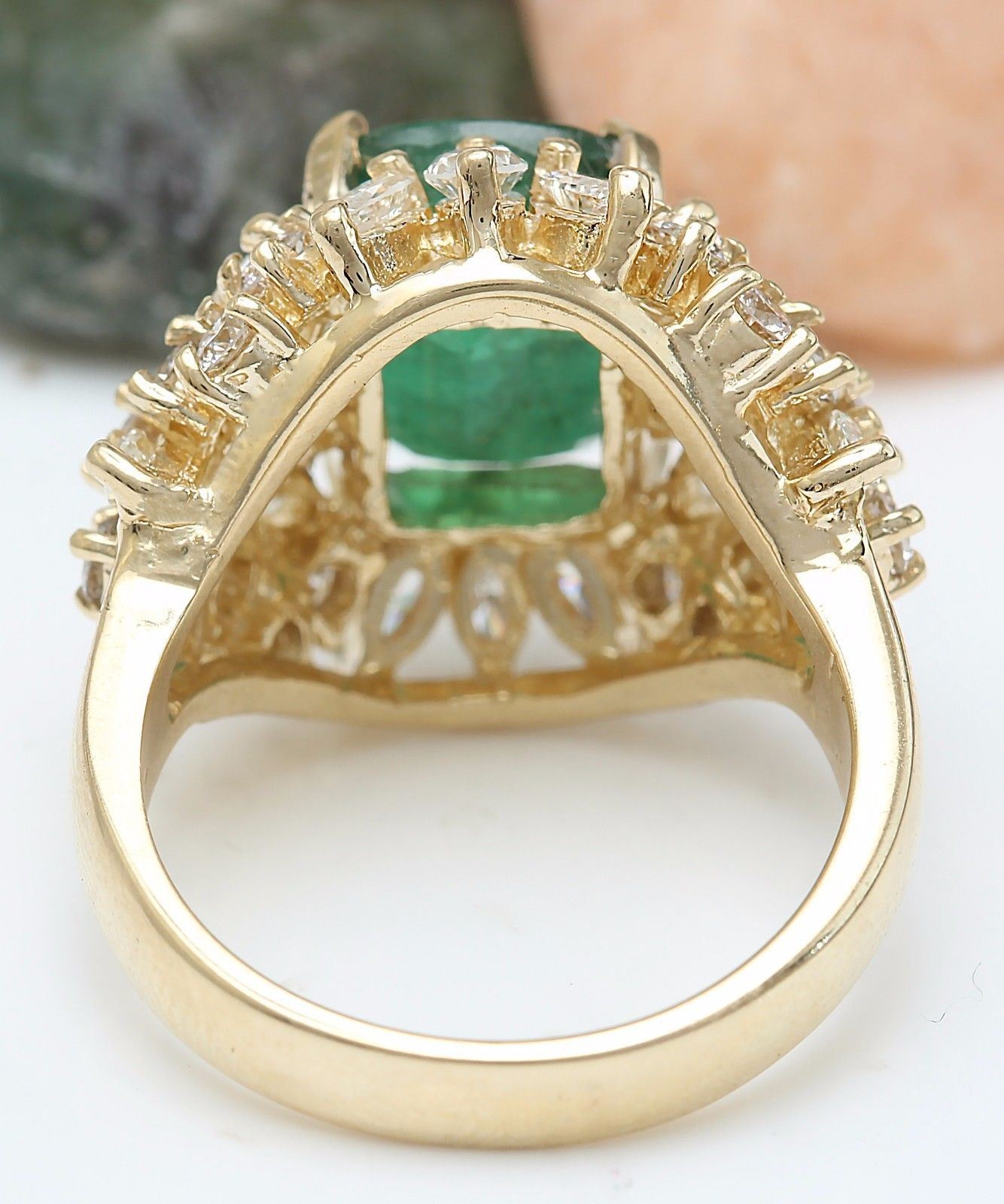 5.56 Carat Natural Emerald 18K Solid Yellow Gold Diamond Ring