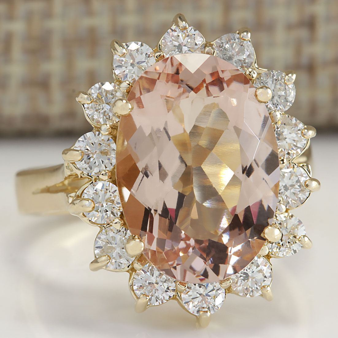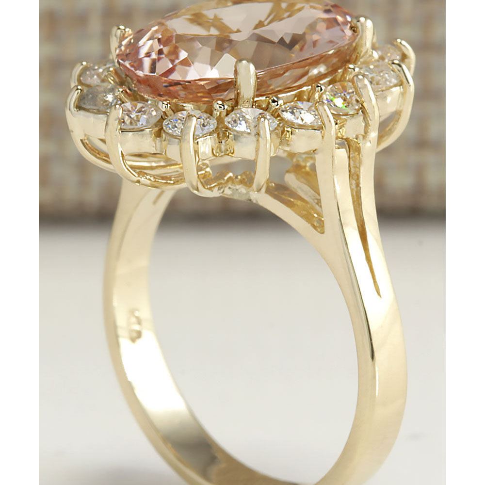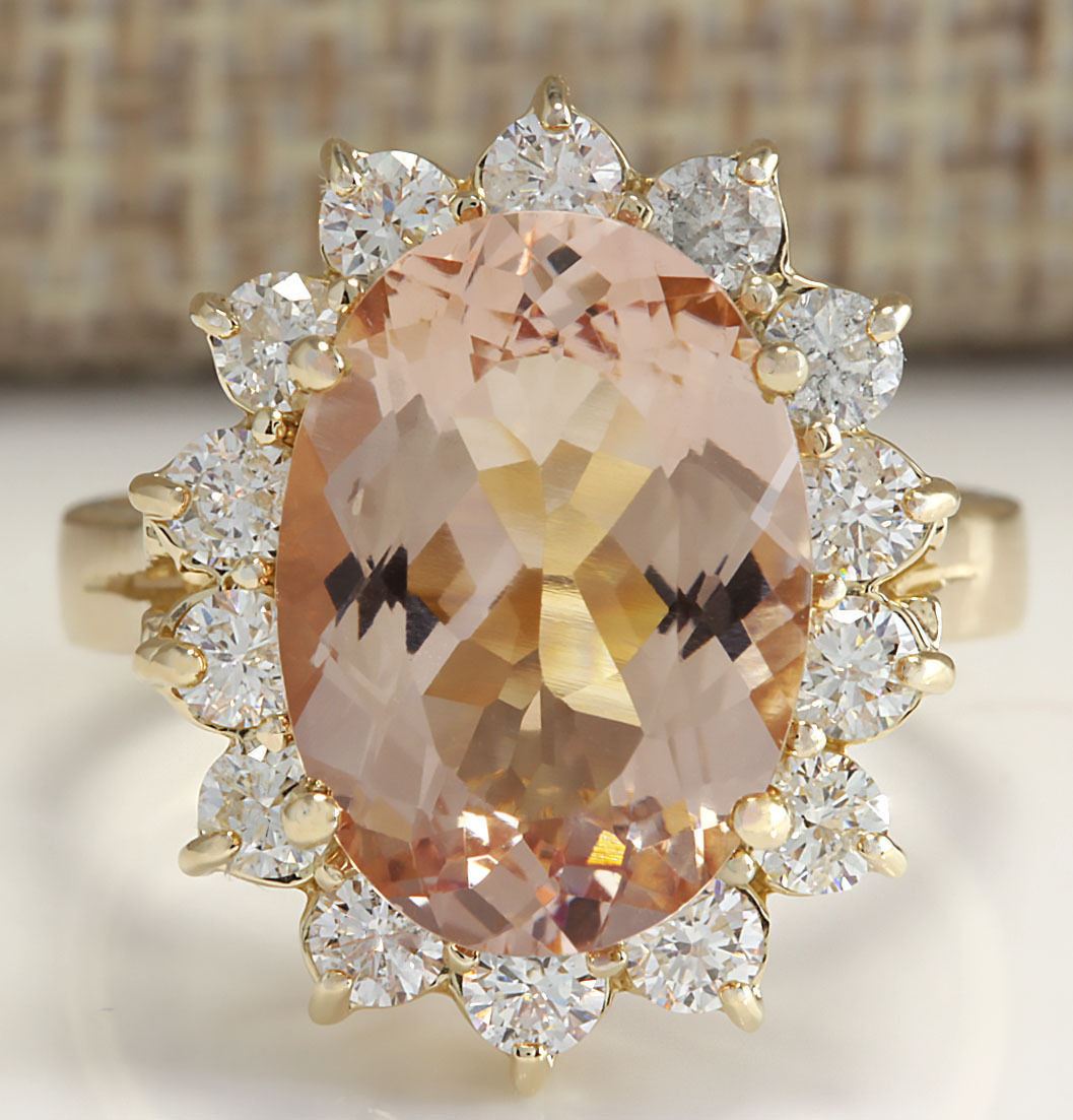 5.56 CTW Natural Morganite And Diamond Ring 14K Solid Yellow Gold