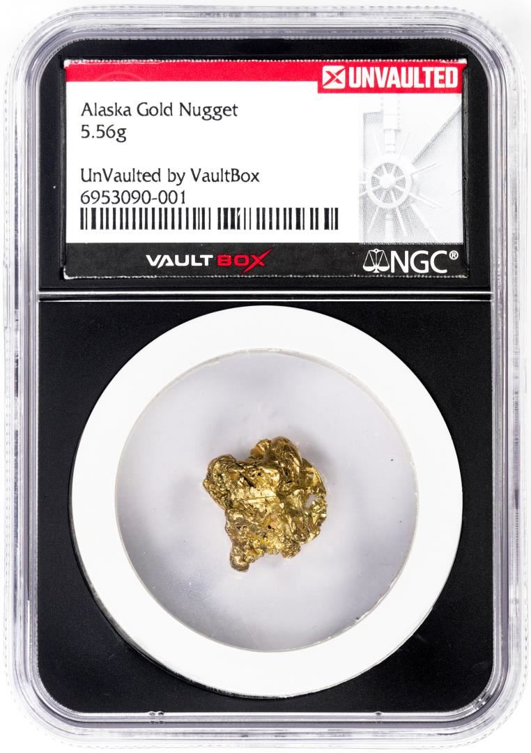 One 5.56 Gram Alaska Gold Nugget NGC Vaultbox Unvaulted. NGC Certified.
