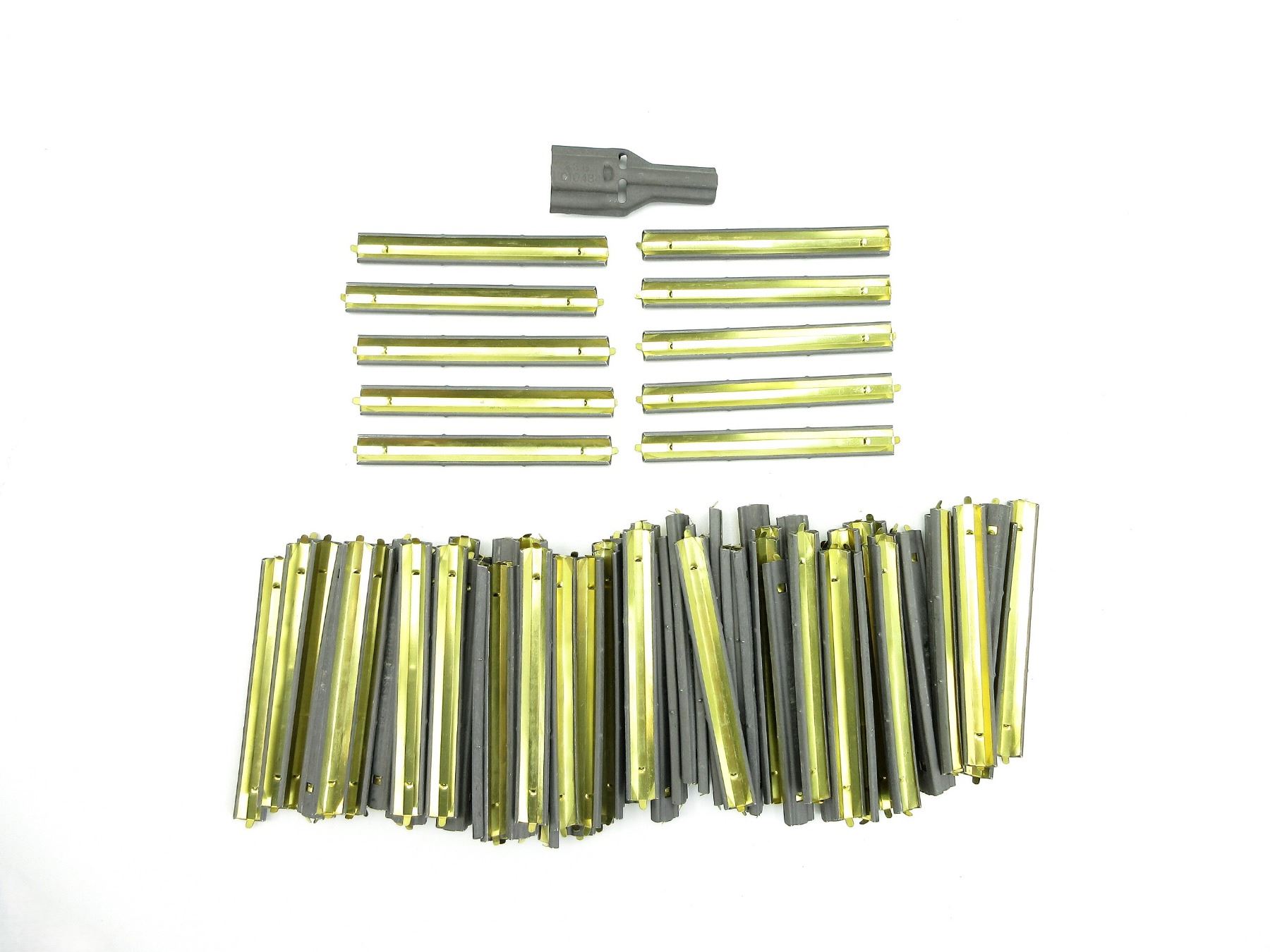 LOT INCLUDES; APPROX. (100) 5.56 NATO STRIPPER CLIPS, FITS M-16 / AR-15 / ETC., METAL, 10 RNDS, MOST MARKED: "GGG ASSY 11010483" & (1) STEEL 5.56MM STRIPPER CLIP GUIDE, MARKED: "G.G.G., 11010484". SEE PHOTOS.