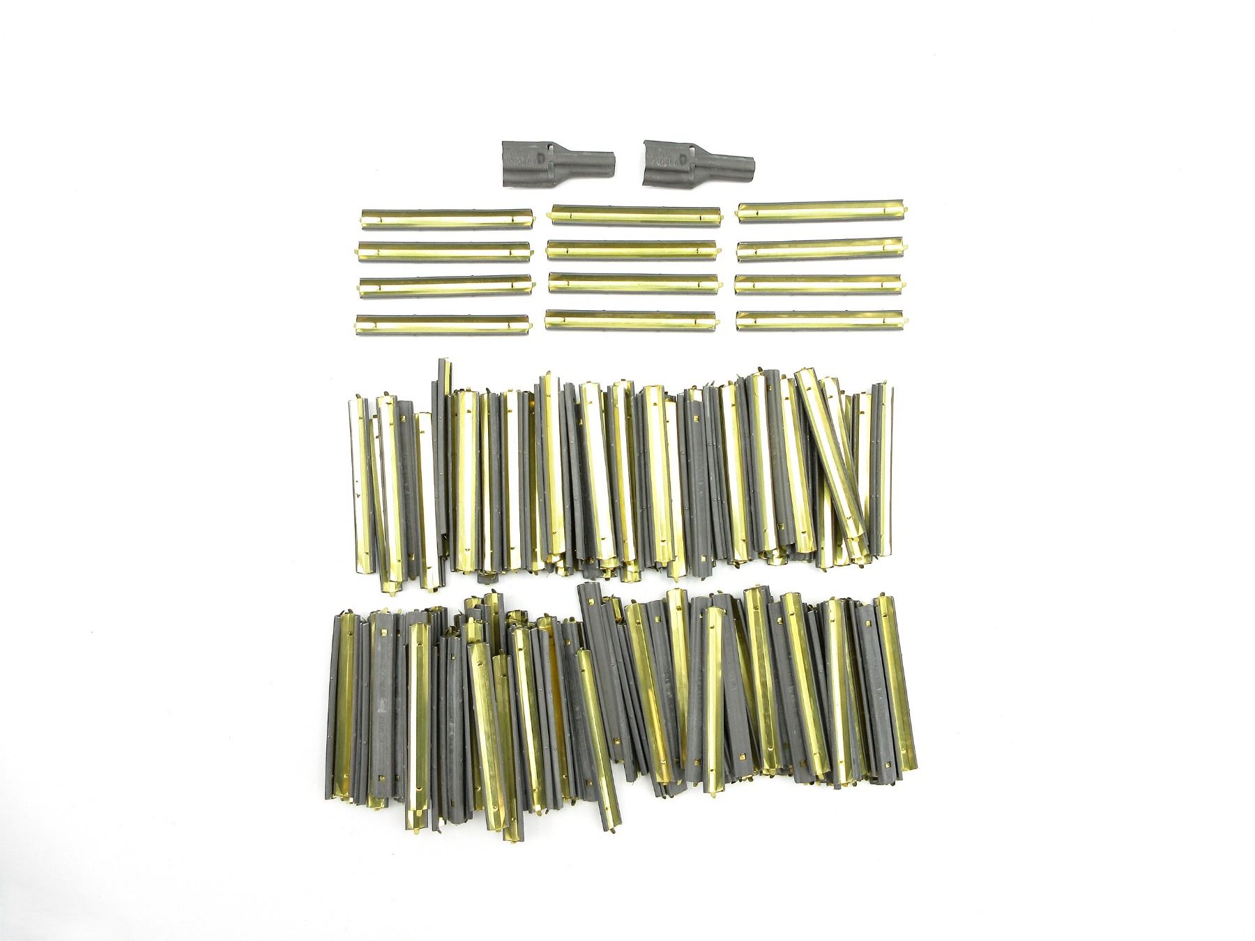 LOT INCLUDES; APPROX. (200) 5.56 NATO STRIPPER CLIPS, FITS M-16 / AR-15 / ETC., METAL, 10 RNDS, MOST MARKED: "GGG ASSY 11010483" & (2) STEEL 5.56MM STRIPPER CLIP GUIDES, MARKED: "G.G.G., 11010484". SEE PHOTOS.