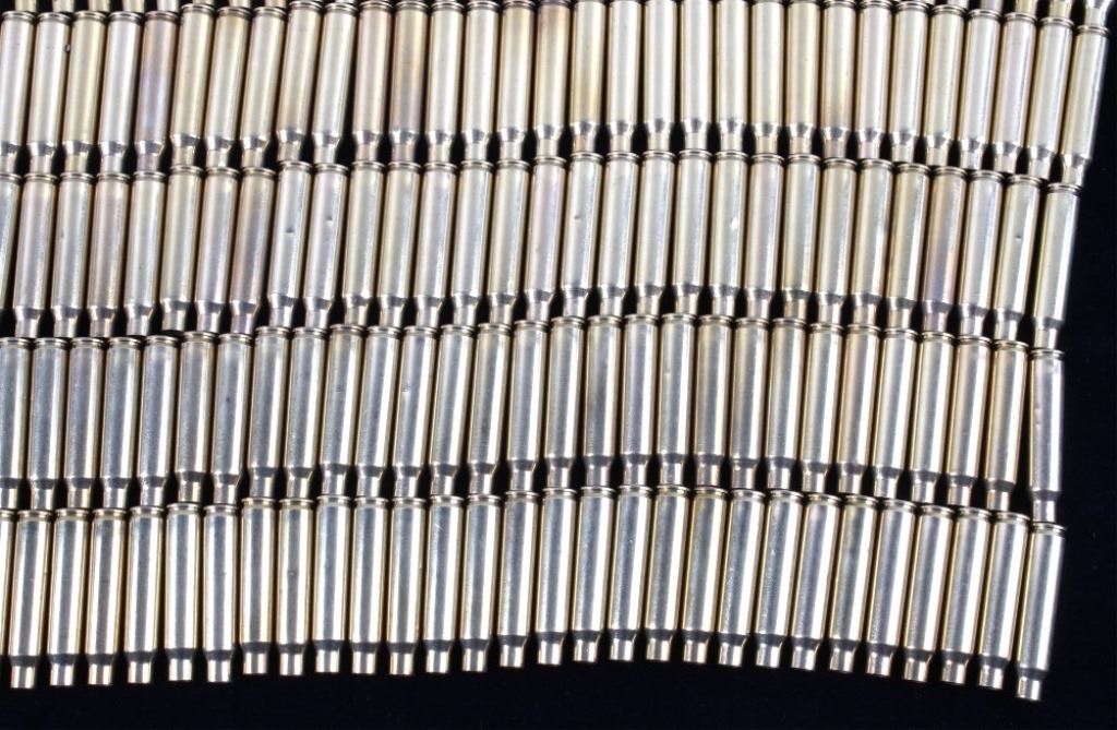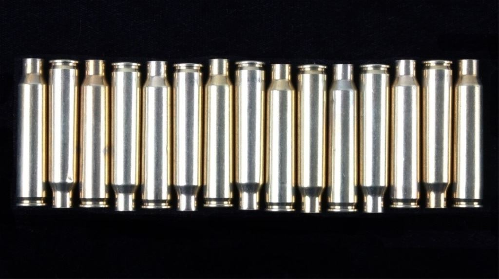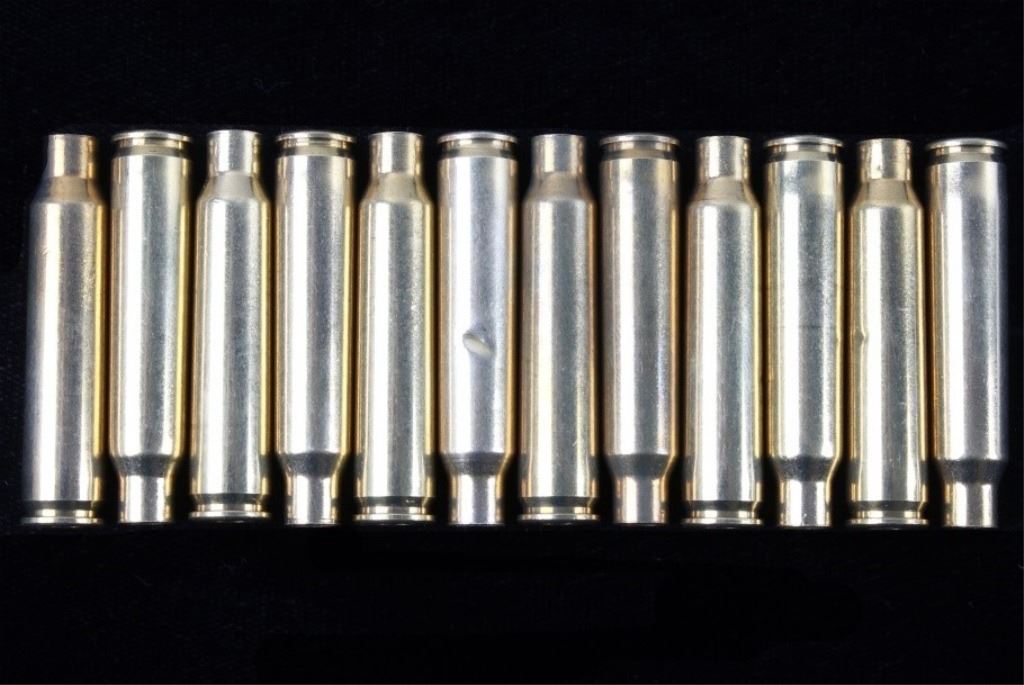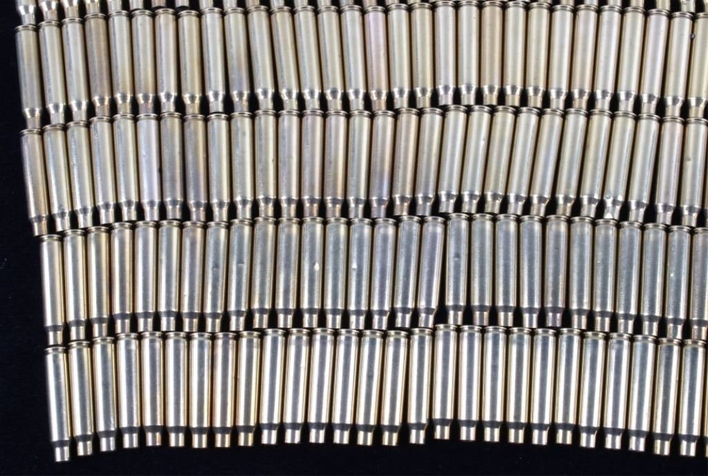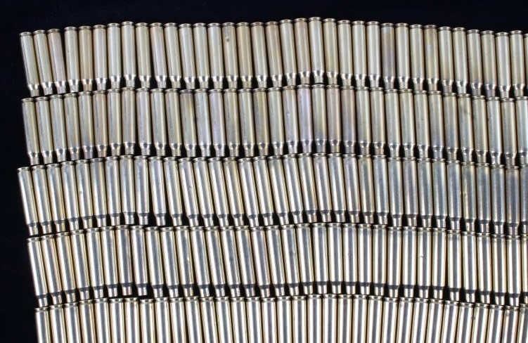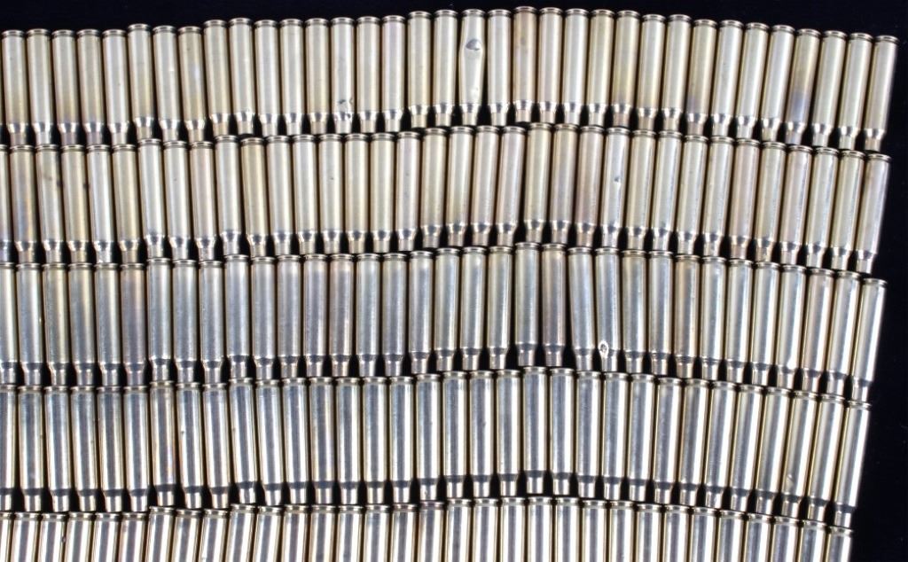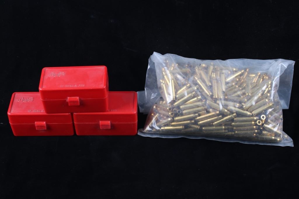 Featured in this lot we have a collection of 5.56 Nato reloading brass cartridge collection. The collection consists of hundreds of empty 5.56 Nato brass cartridges used for reloading. The cartridges are marked across the back reading "L C 75" indicating the casings where manufactured by Lake City Brass. The cartridges come with three 50 round reusable boxes marked "J&S 17 Rem & .223". The collection shows good condition with the primer missing. The collection consists of approximately 475 cartridges.