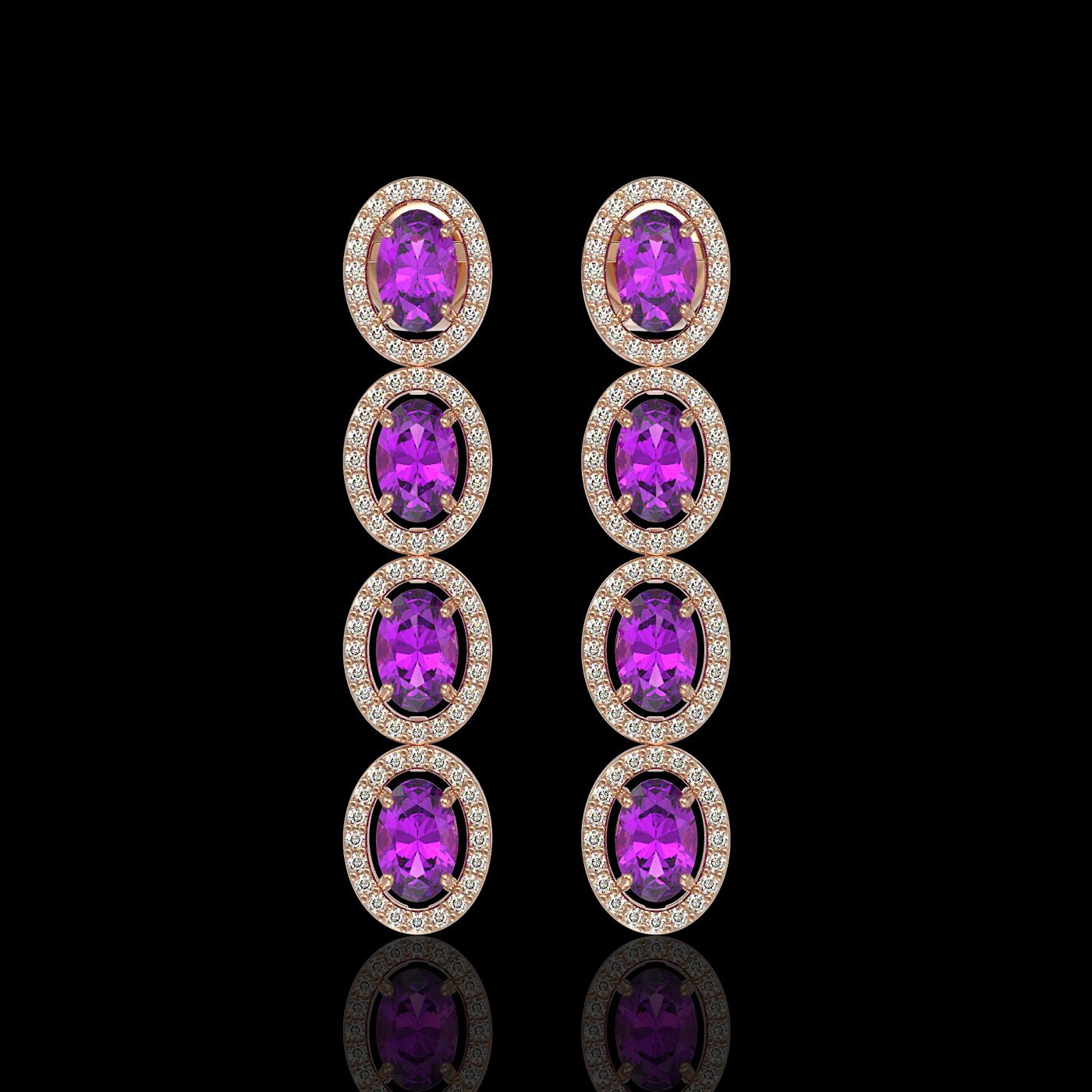 REF-143N6F - SKU: 40542 ---- 5.56 ctw Amethyst & Diamond Micro Pave Halo Earrings 10k Rose Gold