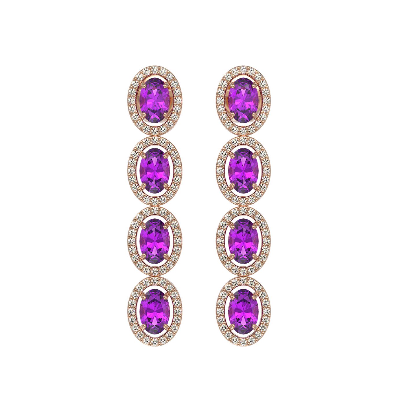 REF-143R6K - SKU: 40542 ---- 5.56 ctw Amethyst & Diamond Micro Pave Halo Earrings 10k Rose Gold