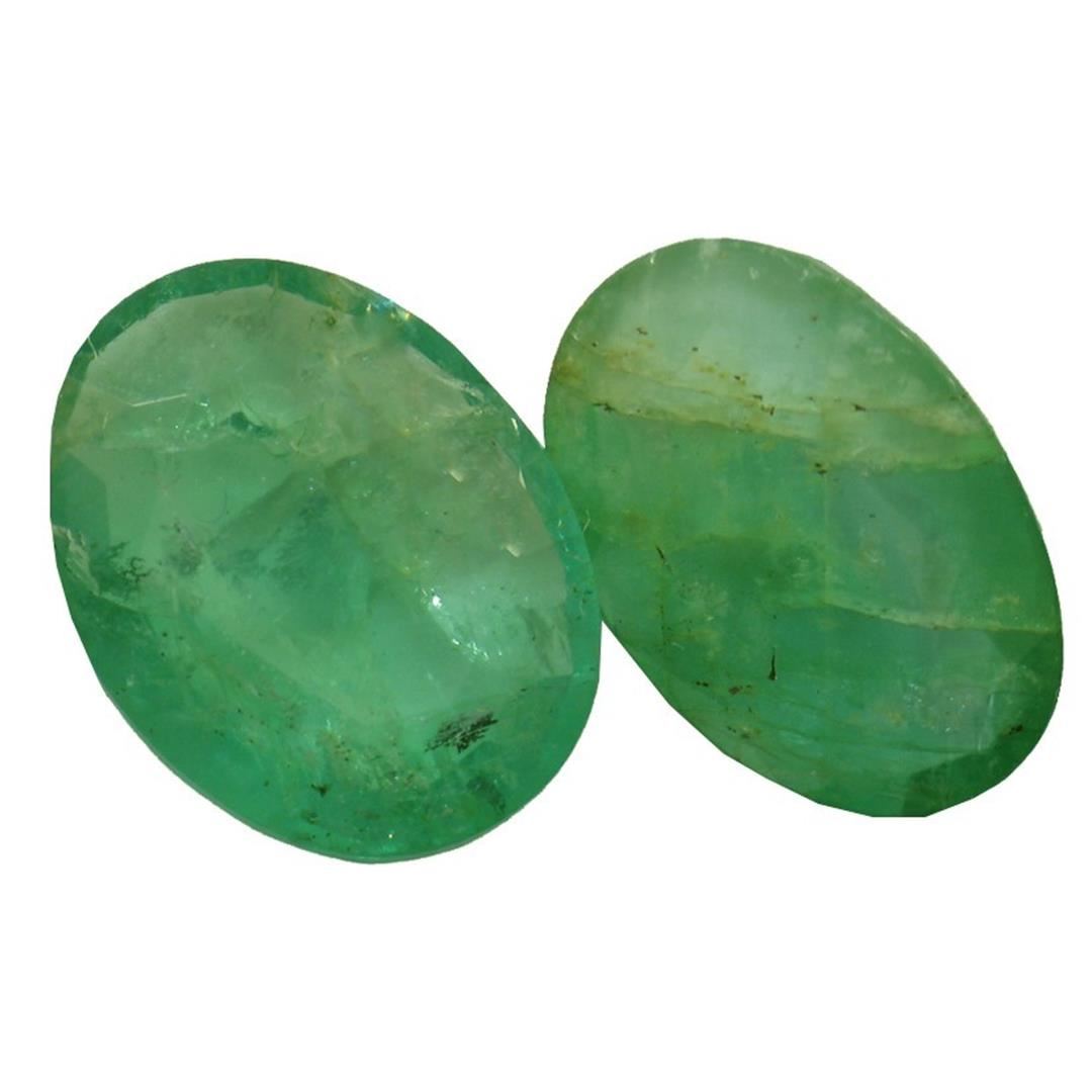 Two oval mixed cut natural emeralds, measuring 12.00 x 9.00 x 3.85mm, exact total weight 5.57ct., clarity is heavily included, type III, medium dark, very slightly grayish, very slightly bluish green color, (GIA vslbG 6/3), cut is good. Transmitting light somewhat diffusely, translucent, Naturally occurring internal & external characteristics are present, Indications of multiple laboratory enhancements, including high temperature heat treatment. Westfield Appraised at $2,550.00.