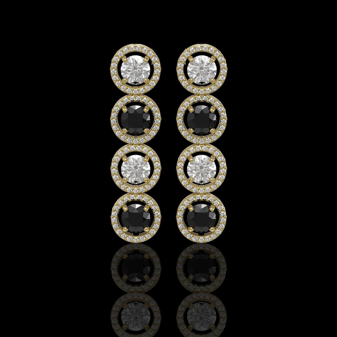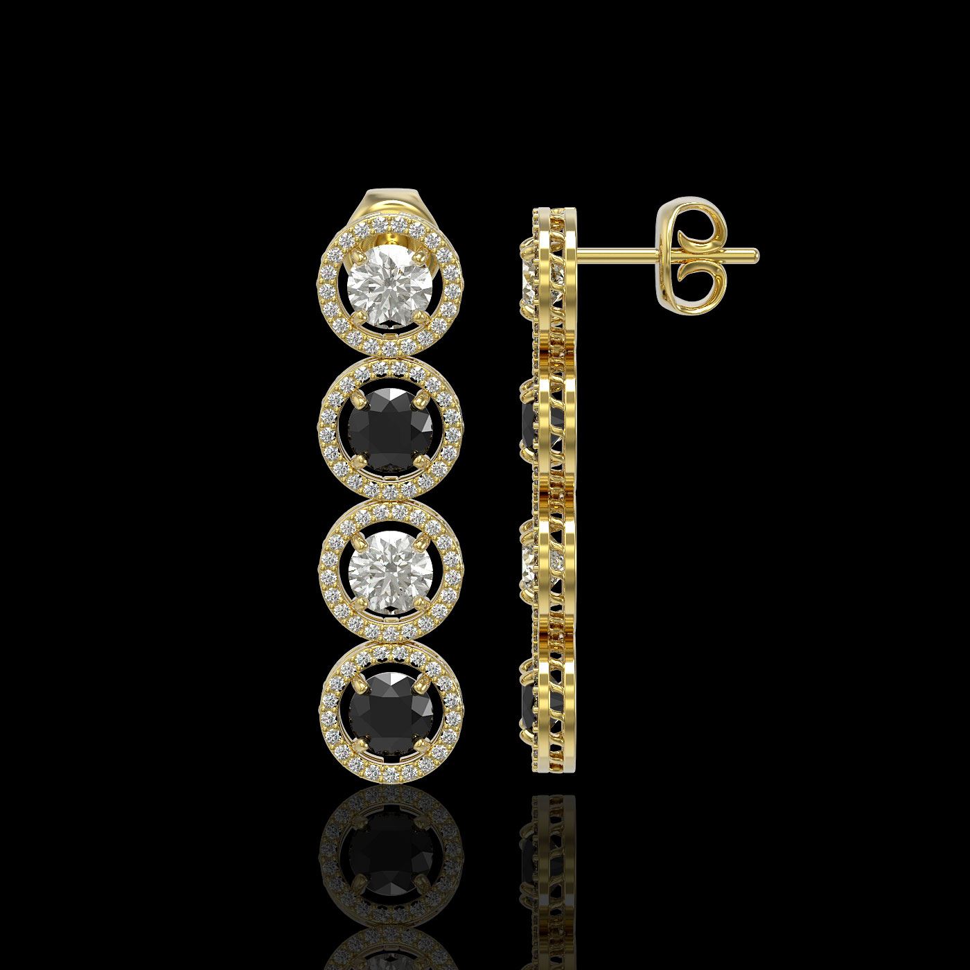REF-581T3M -42613 ---- 5.58 CTW Black & White Diamond Designer Earrings 18K Yellow Gold ---- Luxury Designer Brand Earring Appraised at $25,600 Certificate Number US42613 18K Yellow gold, Earring Size is 1 1/2 Inches Long, Earring measuring approx. 9 x 36 mm Long, weighing in total approx. 9 grams. Made in the USA and is stamped 18K, Main stone 2.12 carat total weight containing 4 pieces of I-J color with VS/SI quality Round shape cut Diamond , Stone #2 2.12 carat total weight containing 4 pieces of Black color with VS/SI quality Round shape cut Diamond , Stone #3 1.34 carat total weight containing 168 pieces of G-H color with VS/SI quality Round shape cut Diamnd