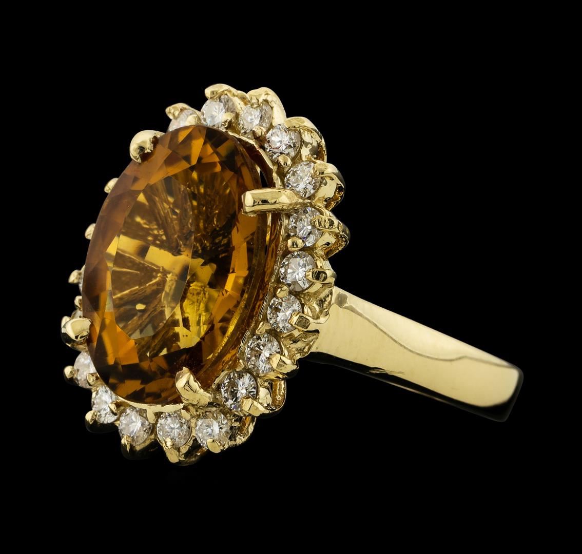 One ring : 14KT yellow gold weighing 5.44gm containing citrine quartz with a total weight of 5.58ct and diamonds weighing 0.62ctw.