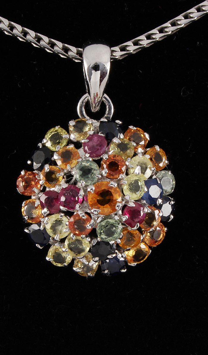 5.59ctw MultiColored Rhinestone Cluster Silver Pendant 2.19g