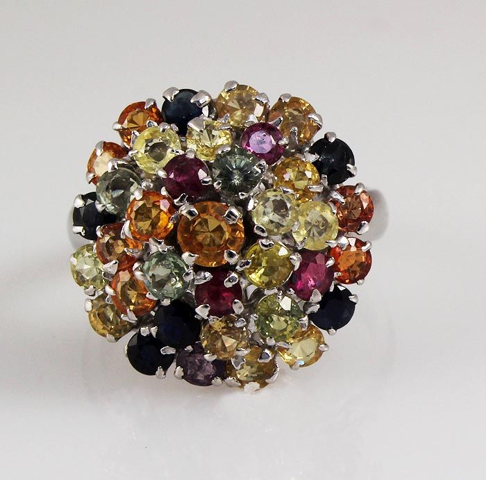 5.59ctw MultiColored Rhinestone Cluster Silver Ring 4.7 **|**|** Natural Multi-color Rhinestones 1pc Round 4mm & 35pcs Round 3mm in Silver Ring; Size: 7.5 ; MSRP: $200