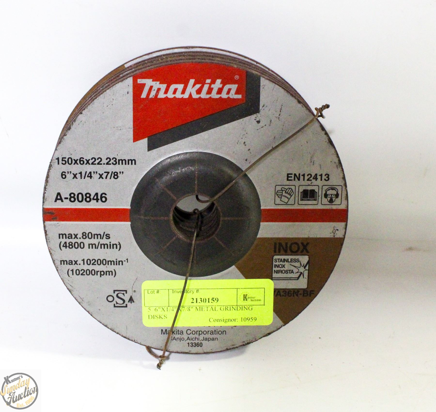 5 6"X1/4"X7/8" METAL GRINDING DISKS