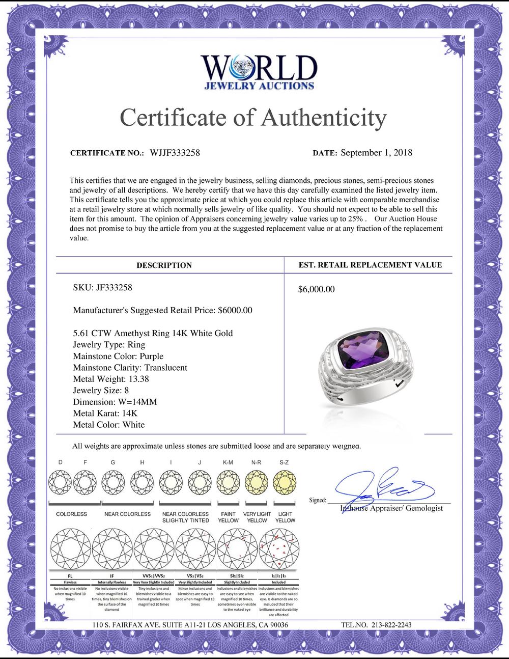 REF-77Y3X - JF333258 ---- 5.61 CTW Amethyst Ring 14K White Gold