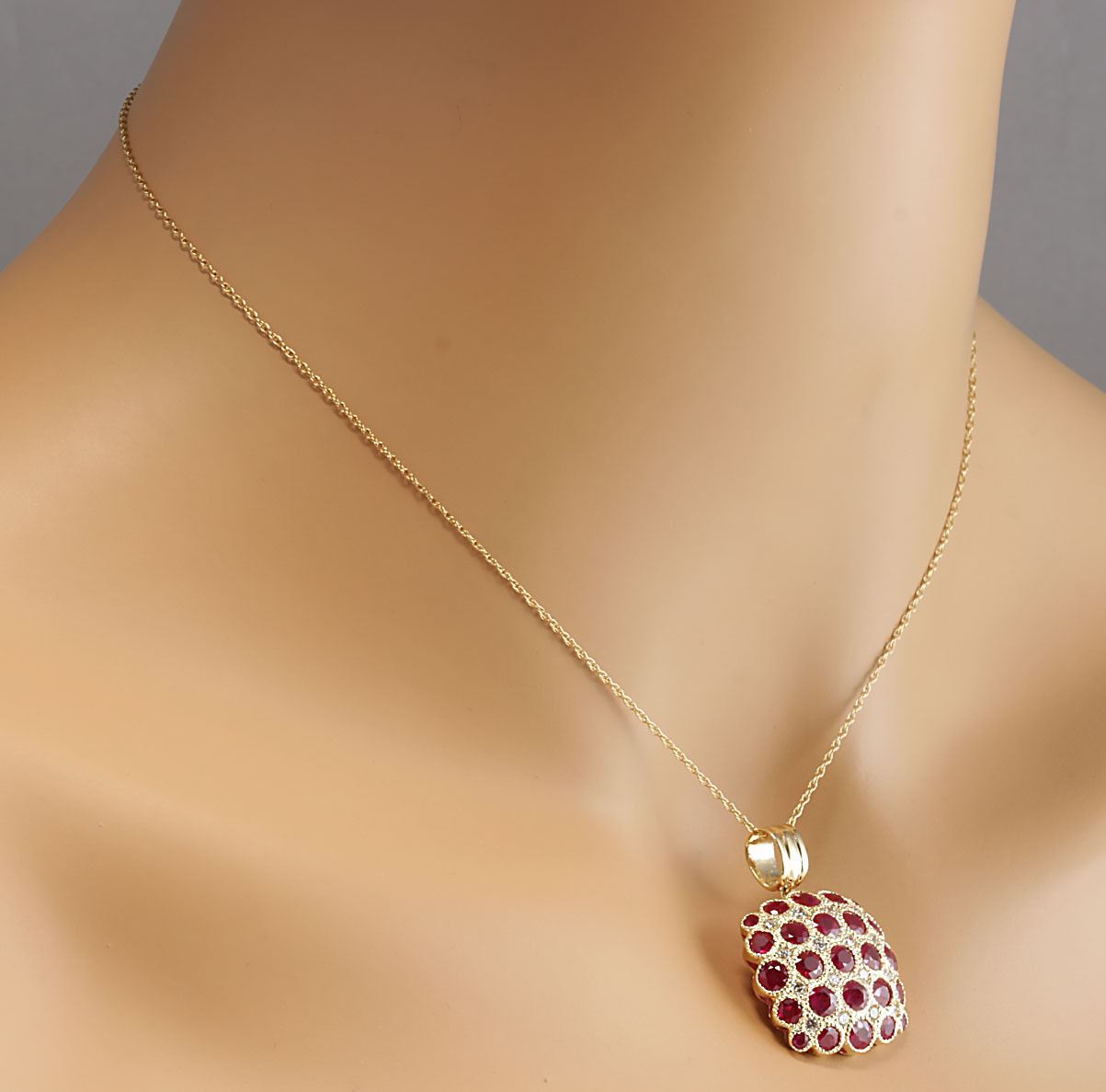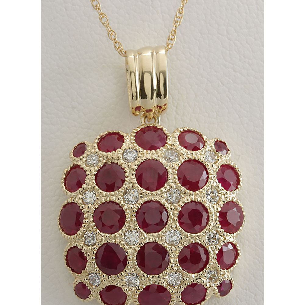 5.61 CTW Natural Ruby And Diamond Pendant In 18K Solid Yellow Gold