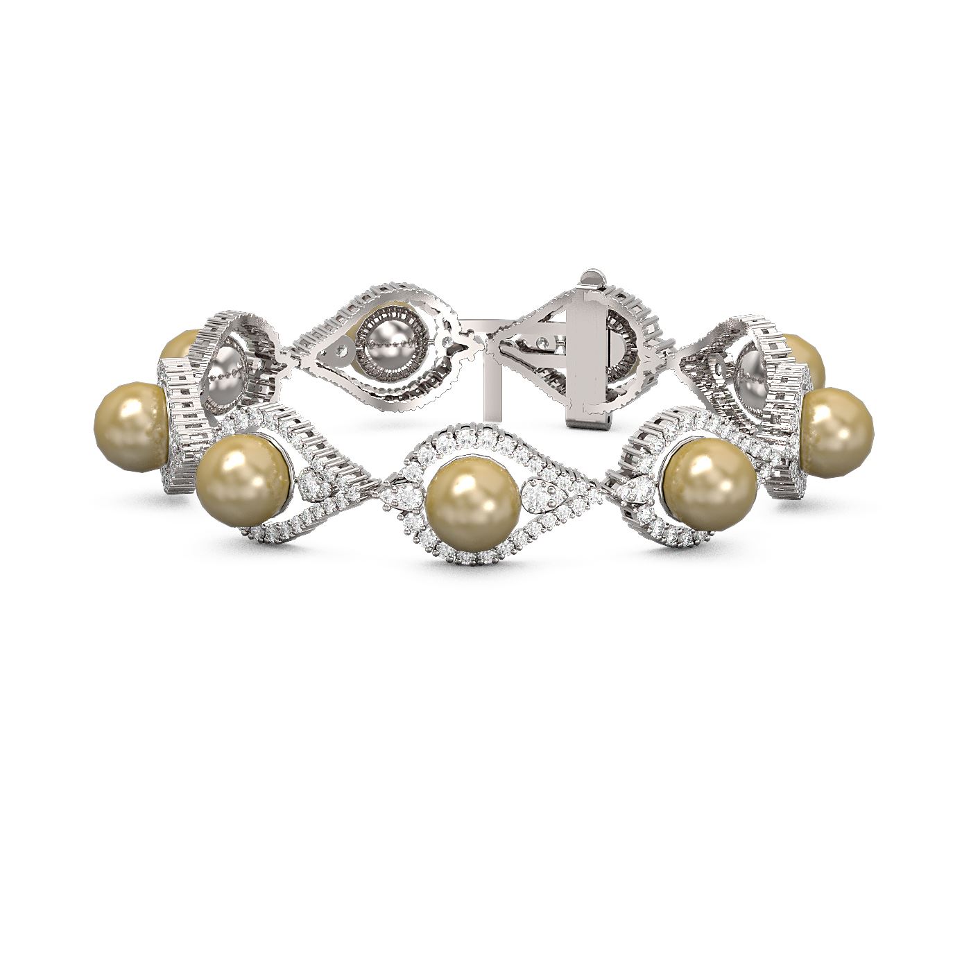 REF-498N5F - SKU: 61478 ---- 5.61 ctw Diamond & Pearl Bracelet 18K White Gold